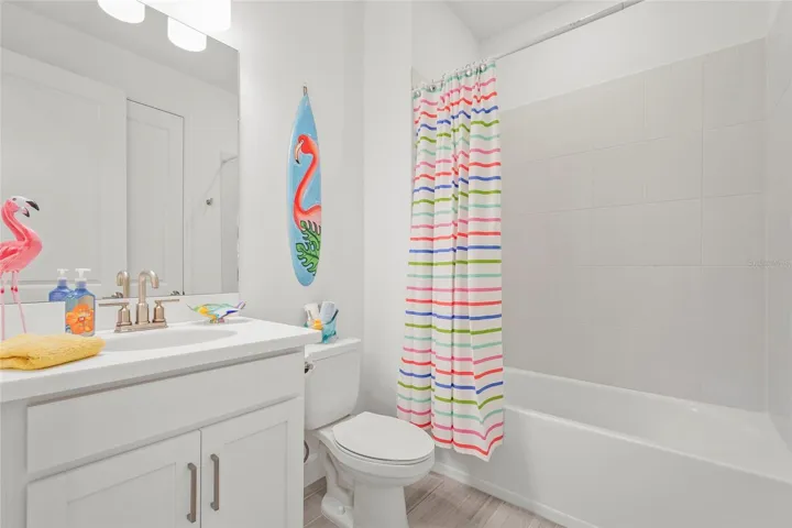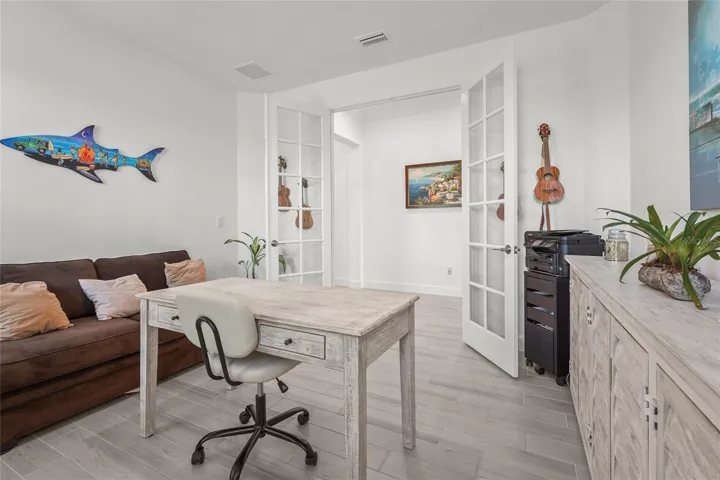 Three additional bedrooms showcase thoughtful design elements including recessed lighting and ample natural light, while two full guest bathrooms feature contemporary finishes and designer fixtures. The thoughtfully designed flex room awaits your personal touch – transform it into a distinguished home office with built-in shelving, cozy den with architectural details, or intimate library where literary adventures unfold.