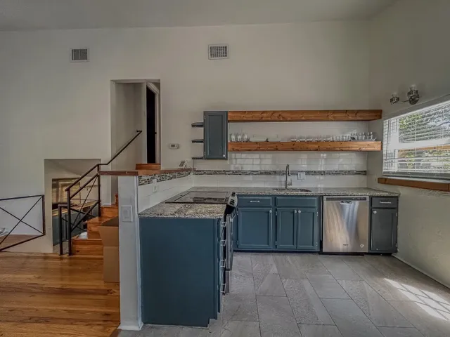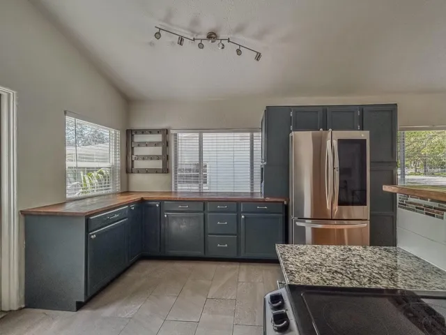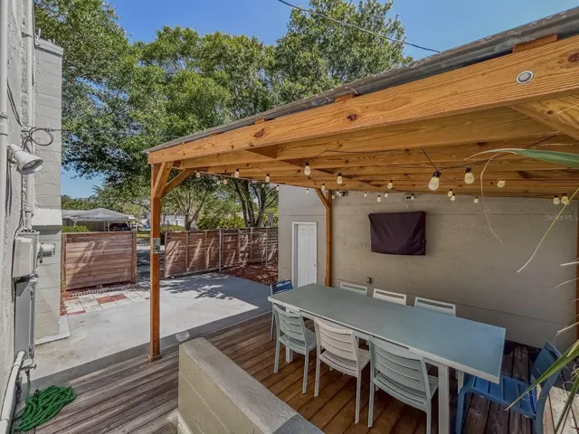 Welcome to your new home sweet home in the delightful Allendale Terrace neighborhood, highly desirable for its quiet living, vintage charm and NO HOA! Step inside this well loved tri-level abode and prepare to be enchanted. As you enter, you’re greeted by a spacious dining room area adorned with original hardwood floors and soaring vaulted ceilings, creating an inviting atmosphere that beckons you to relax and unwind with a cup of coffee or that glass of wine. Just beyond the dining room, the kitchen awaits, bathed in natural light and exuding warmth and hospitality. Custom wood countertops on one side harmonize perfectly with granite counters and custom wood shelving on the other, creating a culinary oasis where every meal feels like a culinary adventure. The kitchen proudly showcases durable tile flooring and complete with modern appliances to assist with those daily kitchen tasks and entertaining. Venture upstairs to discover the cozy bedrooms, where vaulted ceilings and real hardwood floors add an extra touch of elegance and comfort. A remodeled full bath awaits, offering a tranquil retreat for relaxation and rejuvenation. No remodeling necessary. Descend to the lower level and be greeted by a spacious living area adorned with gleaming terrazzo floors, offering a perfect setting for gatherings and quality time with loved ones. Here, you’ll also find a convenient laundry closet and another fully remodeled bath, ensuring both practicality and luxury are seamlessly intertwined. Marvel at the custom cabinetry, providing ample storage and display space for your treasured belongings and entertainment equipment. The thoughtful touches don’t end there – the current owners have installed remote recessed lighting and touchless blinds, allowing for effortless adjustment of the space’s ambiance with just the touch of a button or a simple voice command with Alexa. A perfect movie night awaits! Step outside to discover your own private oasis, complete with a covered patio, with ambiance string lighting and fenced side yard areas, perfect for outdoor entertaining or simply unwinding under the open sky. Situated on a corner lot, this home boasts outstanding off-street parking and a generously sized 2-car garage or workshop that’s sure to delight any hobbyist or collector. This detached building has convenient access from the roadway behind the home. Location-wise, it doesn’t get much better than this. With plenty of shopping and dining options nearby, easy access to the Interstate, and just minutes from downtown St. Pete, you’ll enjoy the perfect blend of convenience and tranquility. Roof 2024 with hurricane brackets for perfect wind mitigation report, HVAC 2015, Water heater 2015, Washer & Dryer ($2000) 2024, Refrigerator ($3000) 2023, New electrical fuse box 2022.