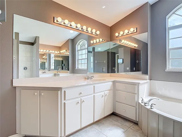 and hers closets, his and hers sinks and vanities in the master bath, which also offers a