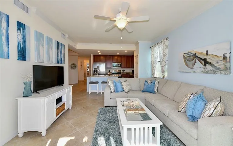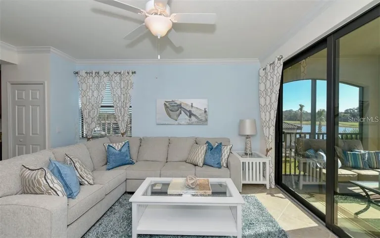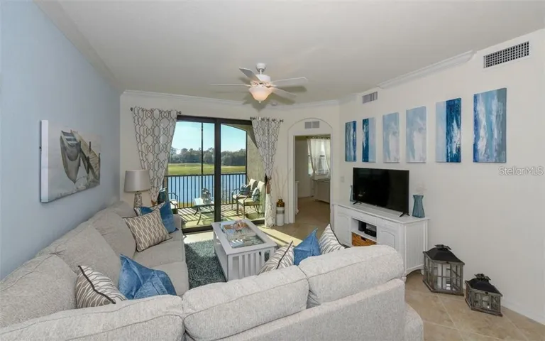 Stunning three-bedroom two-bathroom condo end unit, light, bright and professionally decorated with coastal chic furnishings on the second floor of the sought after golf community of Lakewood National. Enjoy gorgeous views of the golf course as you enter this lovely condo. Plenty of room for the whole family. King bed in master with ensuite bath, queen bed in second bedroom and twin beds in the third bedroom. Just steps to the satellite pool. Enjoy hours of entertainment as you enjoy meals, entertain guests and watch the golfers navigate the new Arnold Palmer designed 36-hole golf course! Enjoy resort style living and state-of-the-art amenities such as: CLUBHOUSE WITH RESTAURANT AND TIKI BAR, FITNESS CENTER, RESORT STYLE SWIMMING POOLS WITH OUTDOOR GRILLE AND POOLSIDE SERVICE, A FULL-SERVICE SPA , TENNIS, PICKLE BALL COURTS AND MORE! Golf Membership transfer available. $65.00 monthly min. expenditure is required at the on-site Tiki Bar/Restaurant (Alcohol Excluded). Easy access to I-75, local shopping and dining, University Parkway, Sarasota Airport and all that Lakewood Ranch has to offer. ALL UTILITIES INCLUDED WITH MONTHLY CAP!