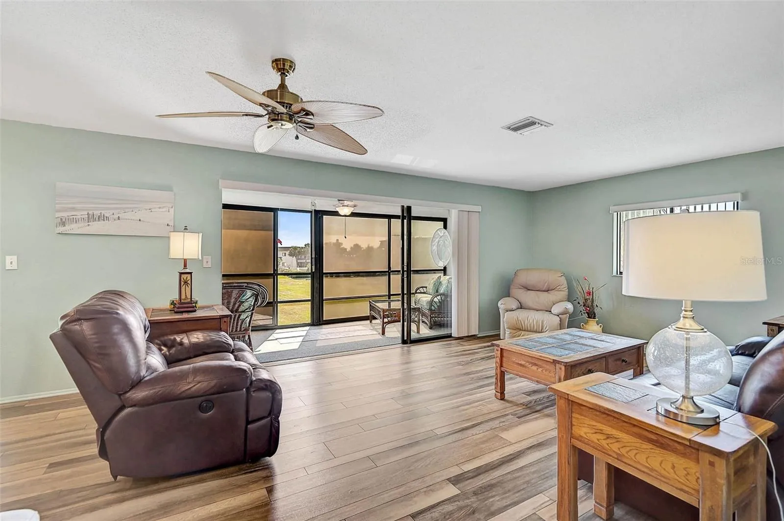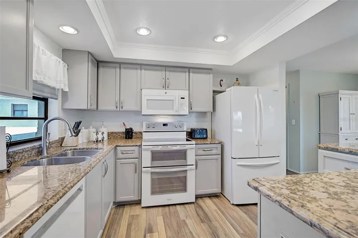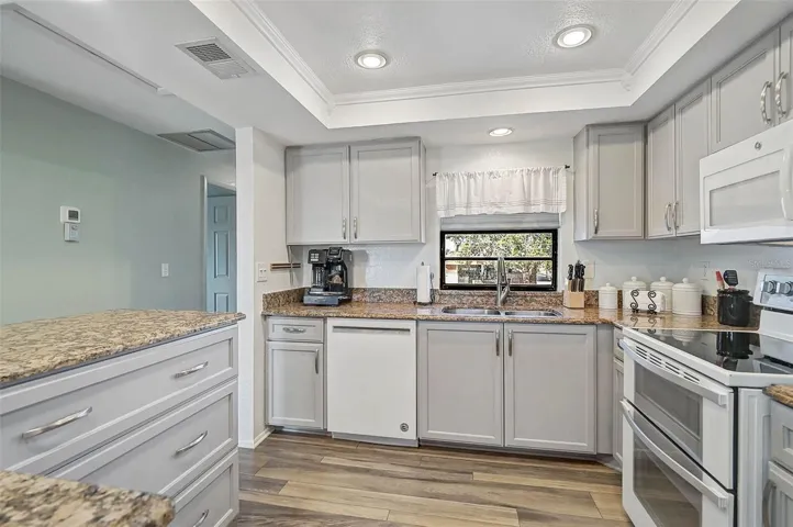 Welcome to Villa Nova, a beautifully maintained 55+ community tucked away in the heart of Venice. Known for its lush landscaping, friendly atmosphere, and convenient location, this community is just minutes to I-75, Gulf Coast beaches, historic Venice Avenue, and a variety of nearby dining and shopping options. This move-in-ready condo offers bright, open-concept living with luxury vinyl plank flooring throughout and generous room sizes with ample closet and storage space. The stylish kitchen, updated in 2021, features wood cabinetry and granite countertops. The spacious primary suite includes a walk-in closet and an updated en-suite bath with a walk-in shower, while the guest bath has also been tastefully renovated for a cohesive, modern feel. Relax on the oversized screened lanai and enjoy peaceful sunrises and year-round breezes. Additional features include in-unit laundry and a new electric panel (2024). The building also has a new roof, and the condo fee was recently reduced, providing added value and peace of mind. Residents enjoy a well-appointed clubhouse with a heated pool, library, kitchen, and outdoor grill. Be sure to view the 3D walkthrough tour to fully experience this lovely home. Schedule your private showing today.