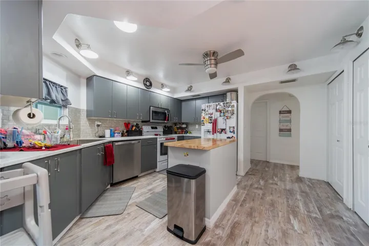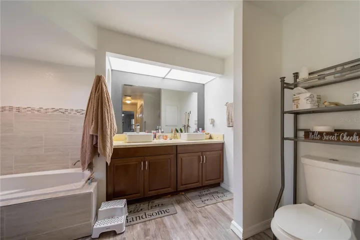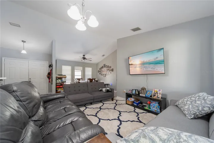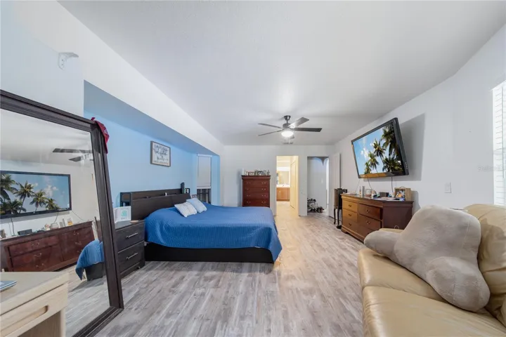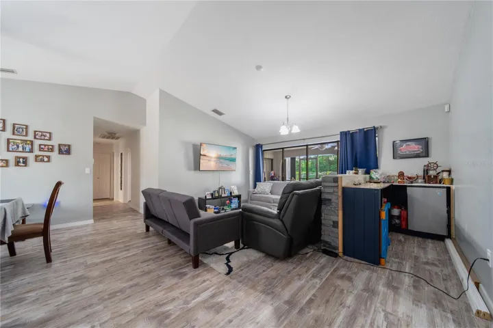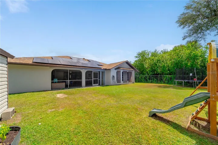 Welcome to your future dream home! This beautifully updated residence offers over 2,000 sq. ft. of comfortable living space with 3 bedrooms, 2 bathrooms, and a 2-car garage. A brand-new roof will be installed, giving you peace of mind for years to come—just move in and start enjoying. Inside, the spacious master suite features two walk-in closets and a remodeled bathroom with an expanded tiled shower, a Jacuzzi tub, and a double vanity with epoxy countertops and sinks. Recent upgrades throughout the home include luxury vinyl plank flooring in every room, a new porcelain kitchen sink, updated countertops, modern lighting fixtures, and a refreshed guest bathroom with a new vanity. The open layout flows seamlessly to the screened lanai, accessible through pocketing sliding glass doors from both the living room and great room—perfect for indoor-outdoor living or future pool plans. Out back, the fenced yard includes a 10×17 storage shed with double doors and a ramp for easy access. The home also features a screened front entry with double doors, making every entrance inviting. With so many recent upgrades and thoughtful touches, this home truly has it all. Come see it in person—you won’t be disappointed!