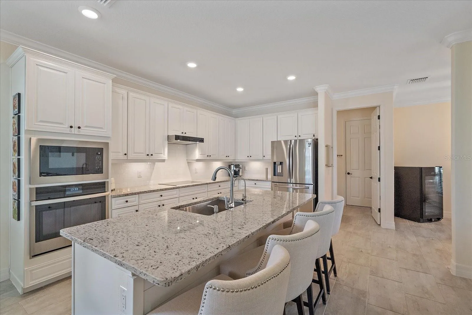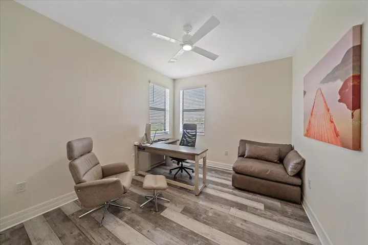 Step inside to find 9 ½ ft. ceilings, an open foyer, and a bright, open-concept layout that enhances the sense of space and natural light. The interior is finished with ceramic tile and luxury vinyl flooring, while the garage showcases durable epoxy flooring. The garage is climate controlled with a mini split. The upgraded kitchen is a chef’s delight with stainless-steel appliances, abundant cabinetry, and a large island for gathering. Offered fully furnished (optional), this home provides a true turnkey opportunity for immediate enjoyment.