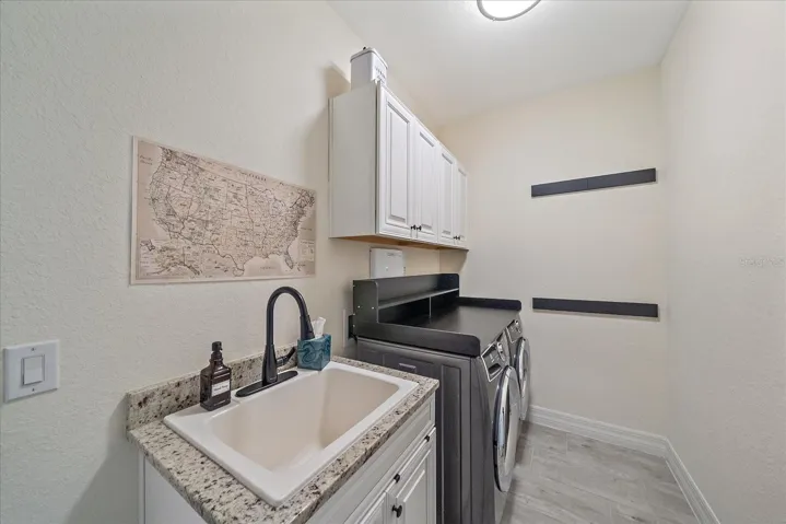 Impressive 6-bedroom, 3-bath, 3-car garage home located in the highly desirable, gated community of Gran Paradiso at Wellen Park. This beautifully upgraded residence offers 3,563 sq. ft. of living space with a thoughtful floor plan perfect for entertaining, working from home, or accommodating multi-generational living. The property features a brand-new heated saltwater pool with full enclosure and expanded patio (2023), creating a private outdoor oasis with serene lake views.