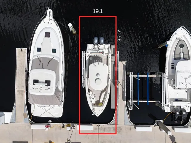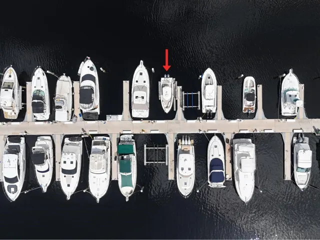 This floating dock slip measures 35′ x 19.1′, accommodates vessels up to 45 feet in length, offers 50 amp shore power, pump-out at each slip, and Wi-Fi. Owners enjoy full access to the marina’s resort-style amenities, including gated parking, 2 floating heated pools, pet walking area, social docks with 3 grills, laundry facilities, private bathrooms and showers, and an on-site fuel dock.