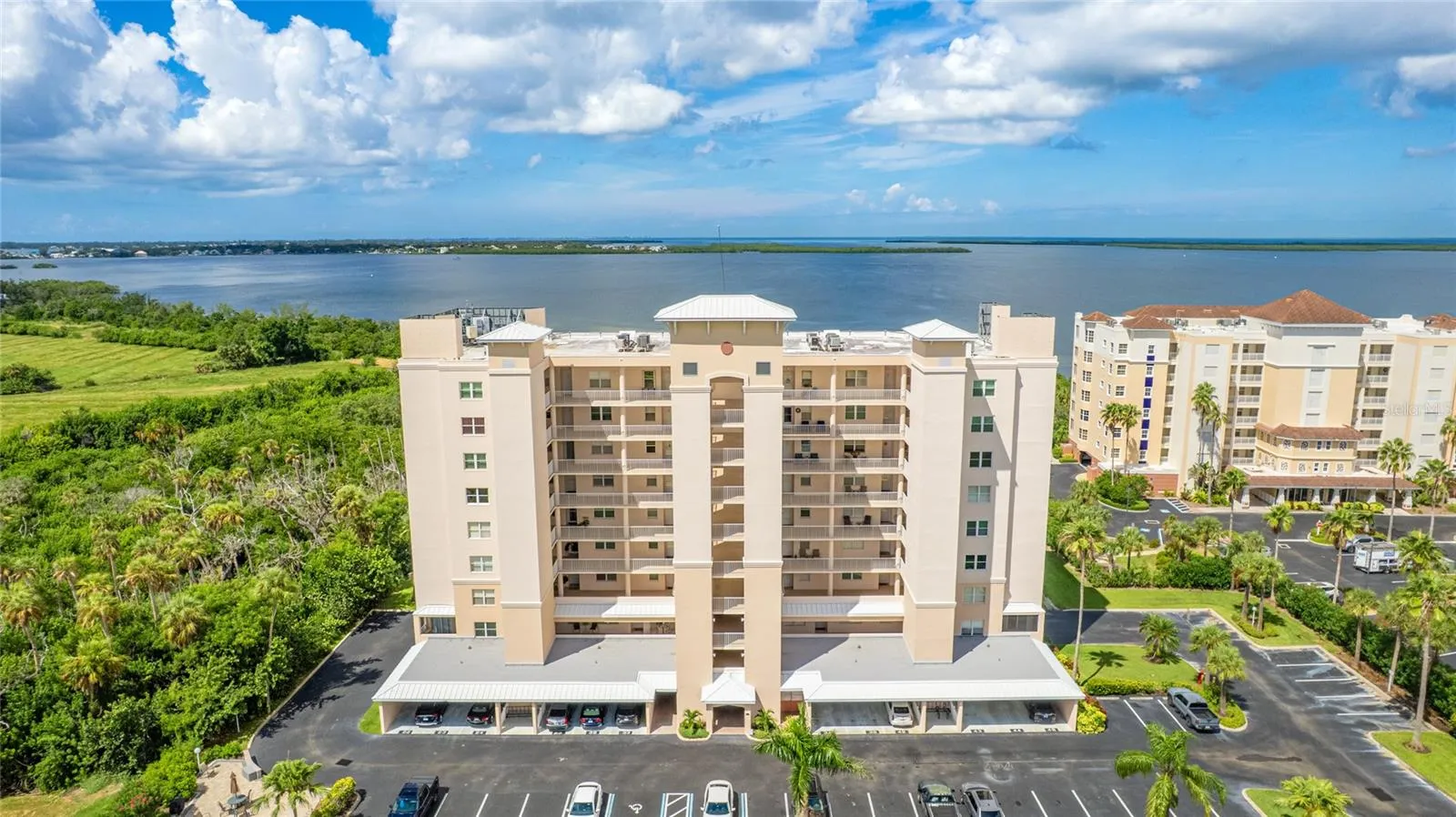 PANORAMIC BAY VIEWS, COMPLETE MODERN RENOVATION, AND TOTAL IMPACT GLASS WINDOWS INSTALLED on this END unit condo overlooking Terra Ceia Bay, the Gulf, and lush estuary greens. This stunning 3-bedroom, 2-bath residence offers 1,349 sq. ft. of living space, a balcony, a private master bath, inside washer and dryer, and a rare 3’x6’ storage unit. Covered parking spot #51 is included.