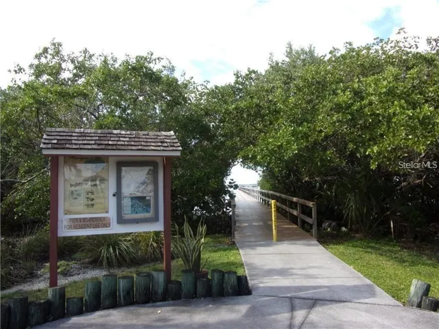The gated community provides resort-style amenities including a clubhouse, heated pool, fitness center, pickleball, 18-hole public golf course, 500-ft fishing pier, bird watching, and dolphin and manatee sightings. The clubhouse also includes a restaurant, and lots of social activities.
