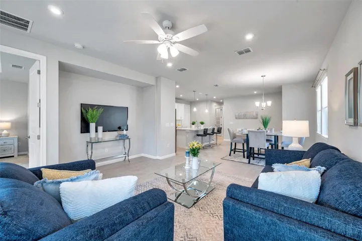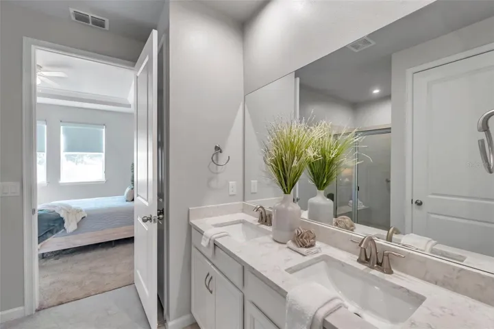 Don’t miss your chance to own the stunning Topsail model home in the maintenance free, 55+ community of The Preserve at La Paloma! Barely lived in 1,765 sq. ft. residence offers 3 bedrooms, 2 bathrooms, a den/office, and a 2-car garage. Enjoy the beautifully landscaped yard and paver driveway as you step inside to discover an open floor plan filled with natural light. The modern kitchen features elegant quartz countertops, stainless steel appliances, and a spacious island with a breakfast bar—perfect for culinary adventures! The generous great room and screened-in back porch create an ideal setting for entertaining guests. The primary suite is complete with double vanities, a private water closet, and a large walk-in closet with built-in shelving. The Preserve at La Paloma is a secure gated community with low HOA fees, no CDD fees and offers fantastic amenities like a pool, pickleball courts, and a fire pit area just across the street. Plus, you’ll enjoy the convenience of being centrally located near golf courses, restaurants, shopping, hospitals, medical offices, beaches, and the interstate. Make this dream home yours today!