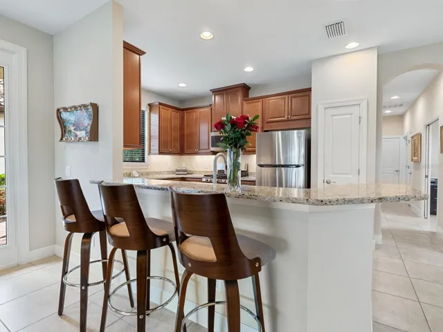 In the gated community of Cobblestone on Palmer Ranch in Sarasota, this waterfront beauty has been impeccably maintained by the original owners. This prime location at the end of a cul-de-sac offers two bedrooms, two baths with an office which could be a third bedroom and a separate dining area. This home’s bright open floor plan and spacious kitchen with breakfast bar lead to the lanai overlooking the pond. The split plan home offers a luxurious primary suite with lake views and a second bedroom that is en suite as well. The extended screened lanai offers serene views of the pond, ideal for entertaining and outdoor living. Additional highlights include a larger-than-average lot ensuring privacy and an oversized two-car garage. Cobblestone on Palmer Ranch is a gated community with excellent amenities, including a beautiful clubhouse with workout facilities, game room, pool with spa, dog park, playground and pickleball courts. A gem, this vibrant community is just five miles to Siesta Key Beach’s and seven miles to downtown Sarasota. This home, in this community, is the answer to your Florida lifestyle dreams. Windows and doors are hurricane-rated. Flood zone X, no flood insurance required.
