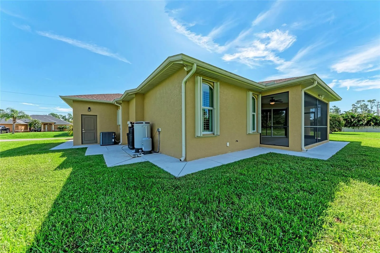 Step outside to enjoy Florida’s year-round sunshine in your extended under-roof lanai, ideal for outdoor dining or lounging in total privacy. The professionally landscaped yard includes decorative curbing with stone accents, a Wi-Fi-controlled irrigation system, and plenty of space to add a pool, detached garage, or garden oasis.