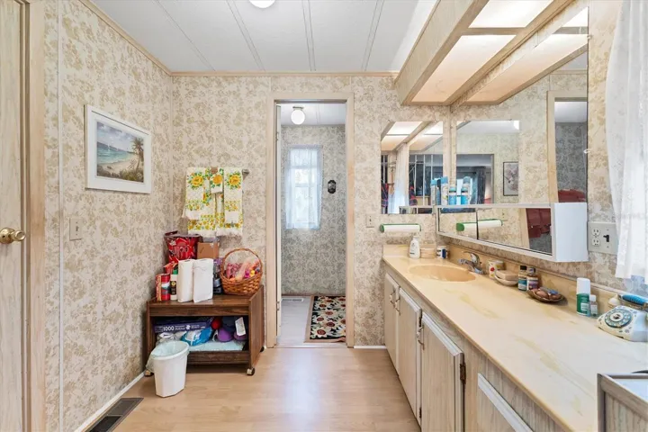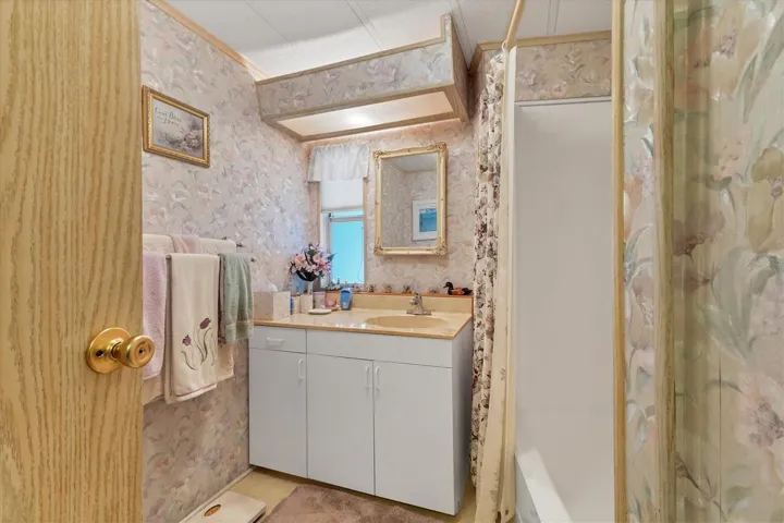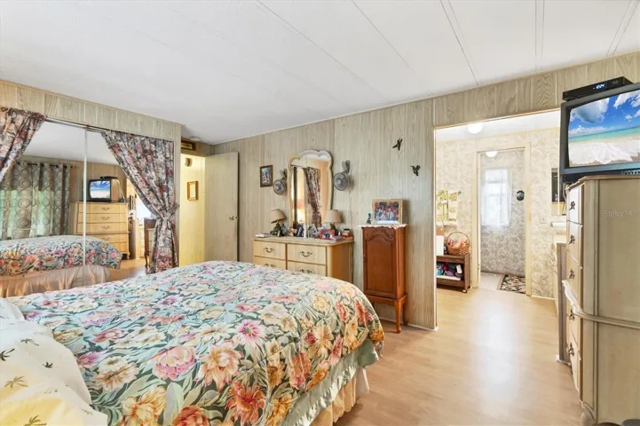 Welcome to your own little peace of paradise. This move in ready home is waiting for you to make it your own. It come partially furnished. Most of the furniture is staying including the bedrooms TV’s tables etc. Shadow Brook is one of the best kept secrets in Manatee county. You own the land which means NO LOT RENT. The low quarterly fee includes Water, Sewer, Cable and Internet. It is a any age pet friendly park. Brand new AC installed in the fall of 2024. The lifetime roof was recoated and sealed with a five year warranty. Both bedrooms have a walk in and a built-in closet. This gives you plenty of space for your clothes. There is laminate flooring throughout the house except the kitchen which has linoleum. Shadow Brook features a beautiful heated pool and shuffle board courts. The clubhouse has a large library and a pool table. You can rent out the clubhouse for special events. Shadow Brook is located near the Sunshine Skyway Bridge and I 75. The beautiful gulf beaches of Anna Maria Island are just a short drive away. All room sizes are approximate. Please use As Is contract.