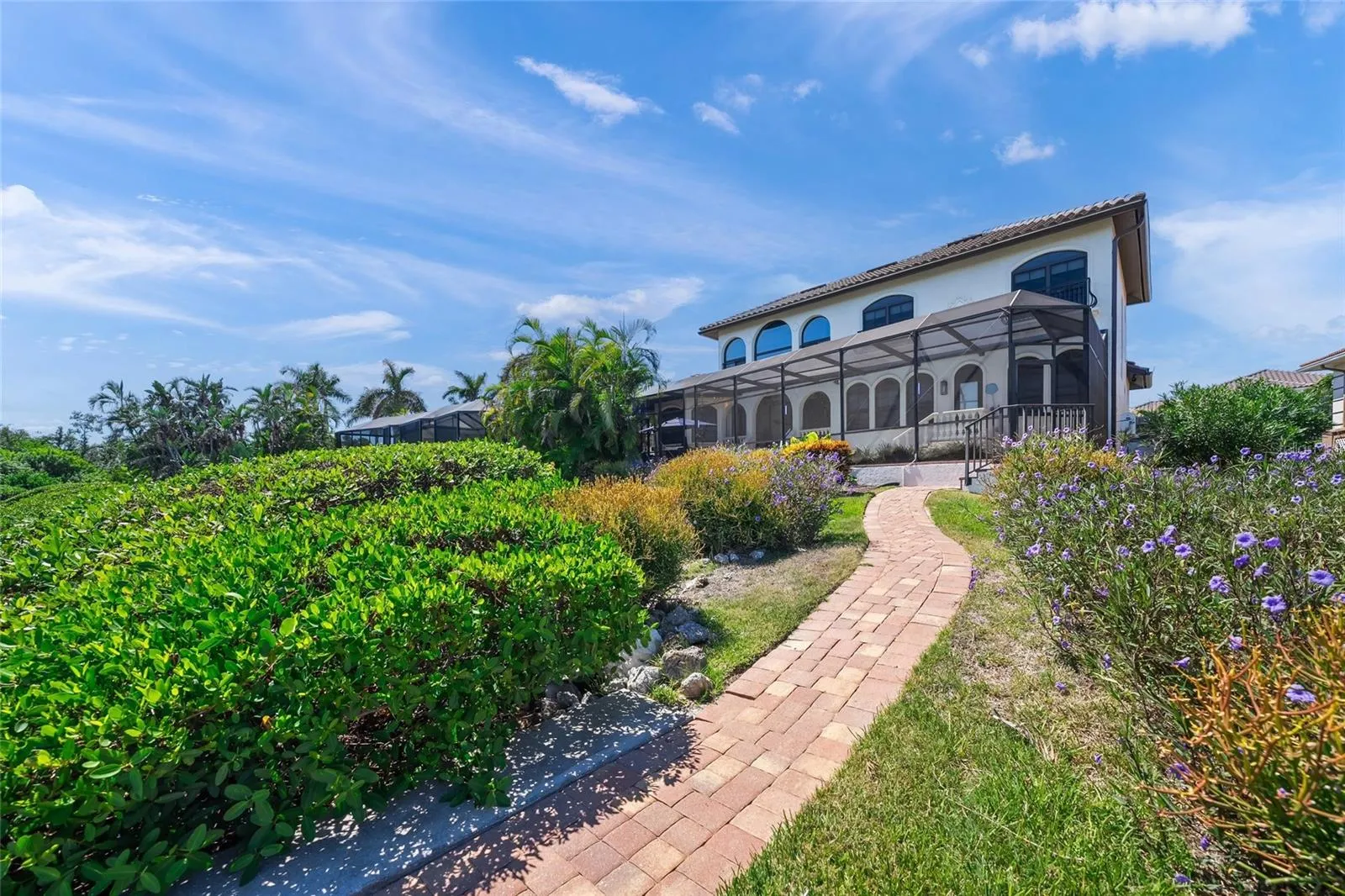 The first-floor owner’s suite offers French doors to the pool, a spa bath with dual vanities, jetted tub, walk-in shower, and new double glass-paneled entry doors. Upstairs, two guest suites and a bonus/media room capture sweeping water views. Upgrades include hardwood bedroom floors, cedar closet, new roof, gutters, soffits, landscaping, Roman white exterior paint, smart thermostats, Sonos speakers, new lighting throughout, and a fully modernized electrical panel with surge protection.