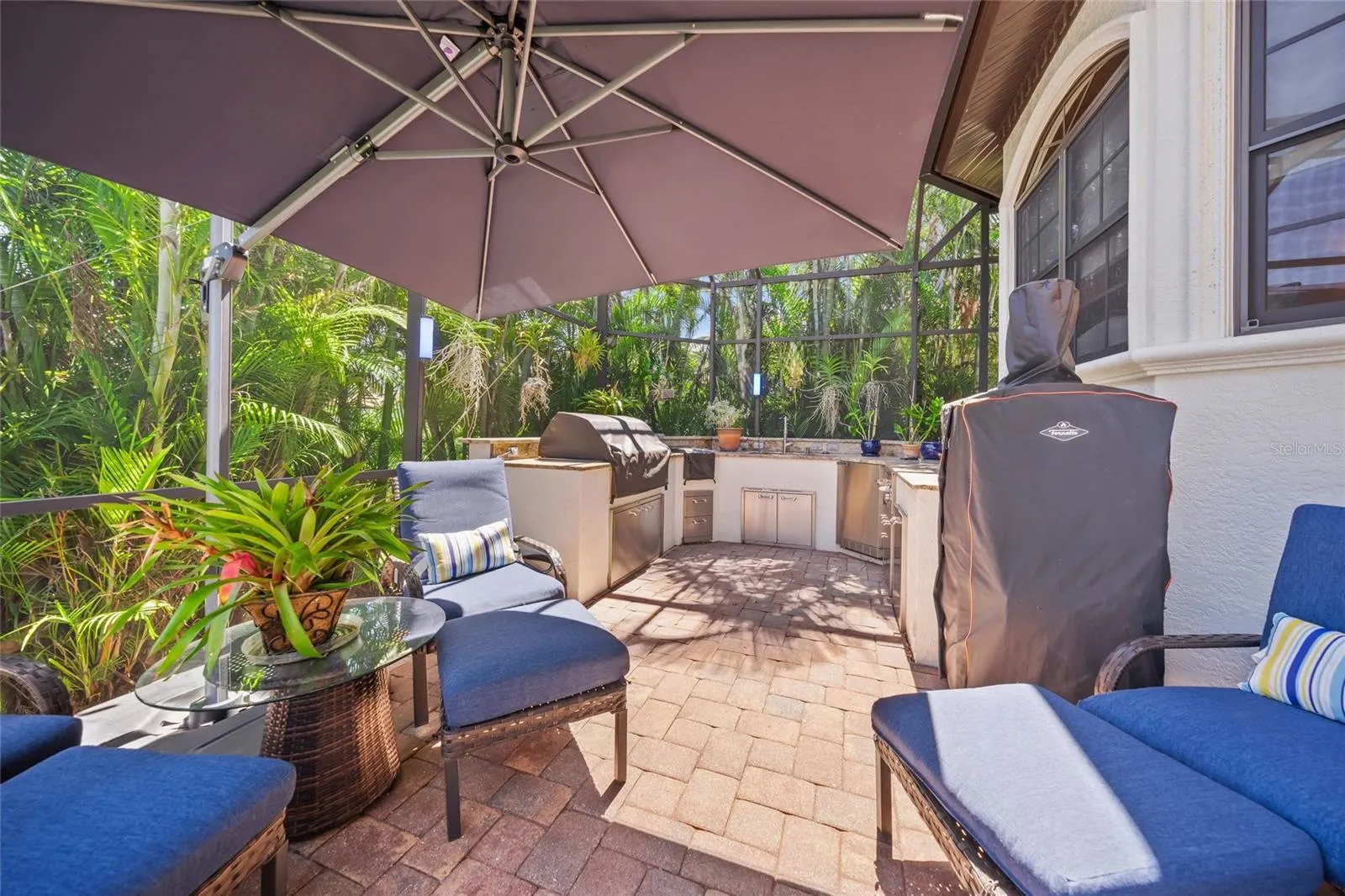 Outdoor living shines with a refurbished screened lanai, heated pool and spa, mood lighting, outdoor kitchen, new Minka fans, and new shades. A deeded dock with 10,000 lb lift and new kayak ladder offers deep sailboat water and no-bridge Gulf access. Peace of mind comes with hurricane-rated construction, impact windows, insulated garage doors, blown-in attic insulation, dual-zone HVAC (with new AC on the main level), and a whole-home generator.