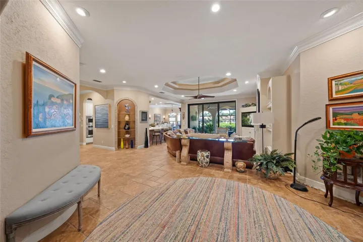Behind the gates of Harbour Landings, this 3 Bed / 3 Bath Mediterranean-style pool home pairs timeless coastal elegance with extensive modern upgrades. Step through arched double doors into a light-filled open floor plan showcasing imported Italian tile, custom ceilings, art niches with onyx and marble, a fireplace with new propane insert, and a gallery with rare Hawaiian KOA wood floors. The chef’s kitchen has been fully remodeled with Dekton counters, painted cabinetry, a new center island, and a built-in Miele coffee station. Additional highlights include a formal dining room with marina views, private office with custom built-ins, and a temperature-controlled 2,200-bottle wine room with arched glass doors and designer lighting.