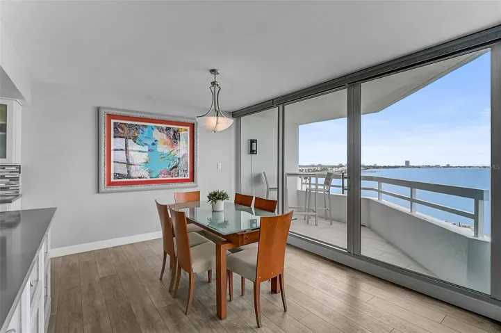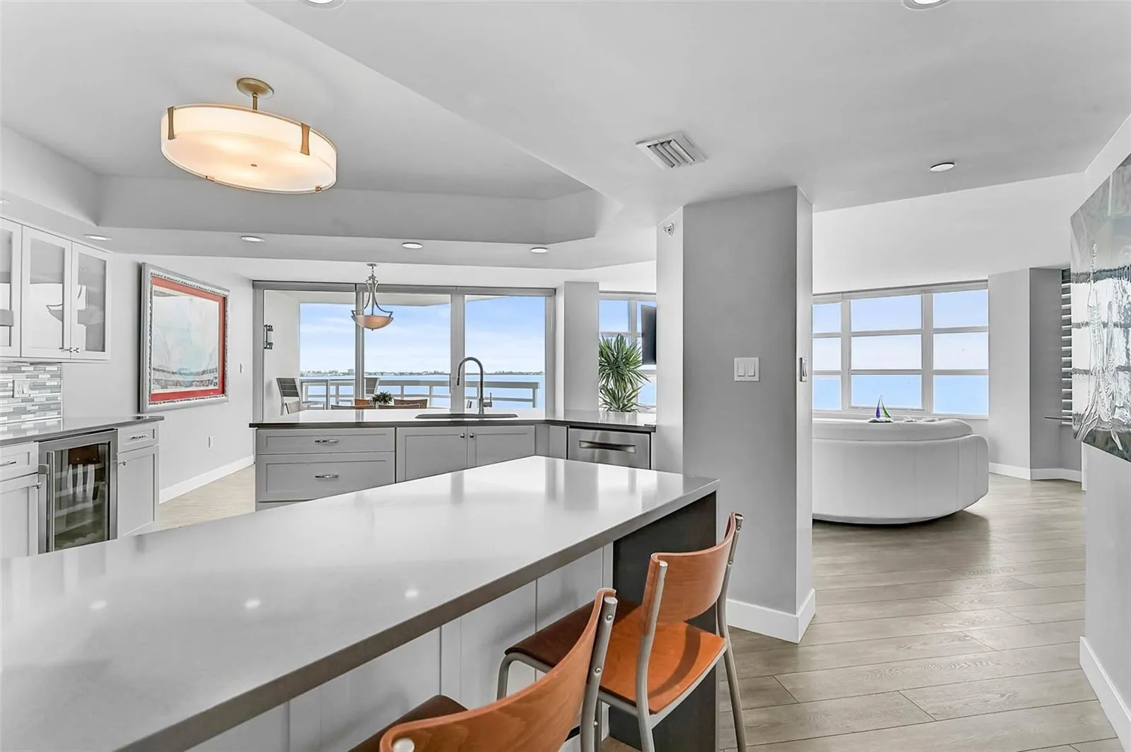 Wake up to panoramic views of Sarasota Bay in this fully renovated 2/2 condo with wrap around windows. Welcome to Condo on the Bay, an exclusive direct bayfront playground where everyday feels like a vacation. Boat slips are available for lease. Residents enjoy the many amenities including resort style heated pools, boat and kayak docks, fishing piers, tennis & pickleball courts, electric car charging station.. It is situated on a 9 acre gated peninsula with 24 hour security and is located next door to the world class Bay Park and Van Wezel theatre. It’s the perfect homebase for exploring the Park ,attending events downtown or going to restaurants This 8th floor condo was fully renovated in 2017, the AC was new in 2024 and a tankless water heater installed in 2022. The kitchen boasts white shaker Kraftmaid cabinetry, quartz countertops, wine cooler, SS GE applicances. The living area is surrounded by windows and the floor to ceiling sliders open to a lanai just off the dining area. Hunter Douglas dual sheer shades are installed throughout the condo. The primary ensuite includes a walk in custom closet and a shower, dual sinks. The spacious guest room has a murphy bed and also serves as an office. The guest bath is a combo tub/shower with a rain shower head. Hurricane sliders were installed in 2017. The main living area has been opened up to create more floor space that was previously wasted adding to the sq footage. If you looking for a place to dock your boat or kayak or go fishing you could not ask for more convenience than walking out your front door. Dock slips are first come/first serve and for the first time in years there is no waitlist. Lido Beach is only 2 miles away, the airport 4 miles and the world famous Siesta Key Beach 5 miles. Looking to make friends? Condo on the Bay is a very friendly community. There are organized social events, happy hours, dining out, majong, water aerobics, walking groups and get togethers for no reason. Your Hoa fee includes all but your electric bill. Offers must include preapproval or proof of funds.