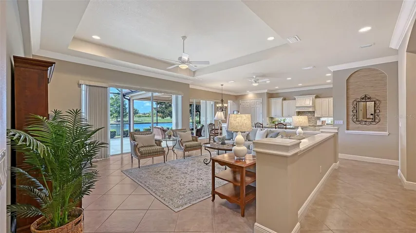 Positioned on a premier south-facing homesite with serene lake and golf course views, this custom-built Green Certified Lee Wetherington residence blends thoughtful design with timeless quality. Offering 3 bedrooms, 2.5 baths, and a spacious 3-car garage, the home’s open floor plan is enhanced by crown moldings, tray ceilings, and a well-appointed kitchen with a large center island, stainless steel appliances, and a generous double door pantry. The primary suite features two separate closets, dual vanities, a walk-in shower, private water closet, and linen closet. Expansive sliders open to an oversized lanai where the remarkable view can be enjoyed throughout the day. In addition to an air-conditioned versatile “Florida basement,” this home offers three additional dedicated storage closets, creating abundant room for seasonal items, sports gear, or household essentials. Built to Green-Certified Gold standards, this home reflects a commitment to environmental design, energy efficiency, and healthier living. Located in the maintenance-free enclave of Secret Harbor, this residence combines luxury, comfort, and convenience in Country Club East, one of Lakewood Ranch’s most sought-after communities. Lakewood Ranch is the number one best-selling multigenerational community in the country, ideally situated near world-class shopping, dining, entertainment at Lakewood Ranch Main Street and University Town Center, downtown Sarasota, I-75, pristine beaches, excellent schools, and top medical facilities. Membership to the Lakewood Ranch Golf and Country Club is optional.