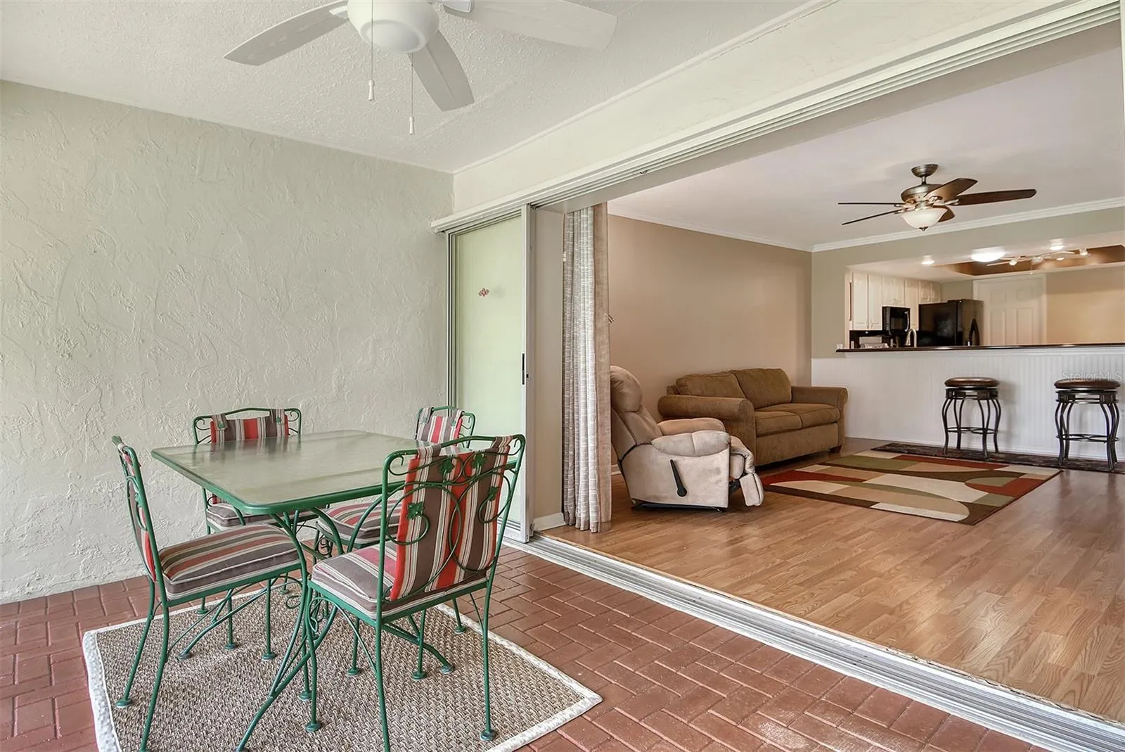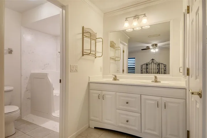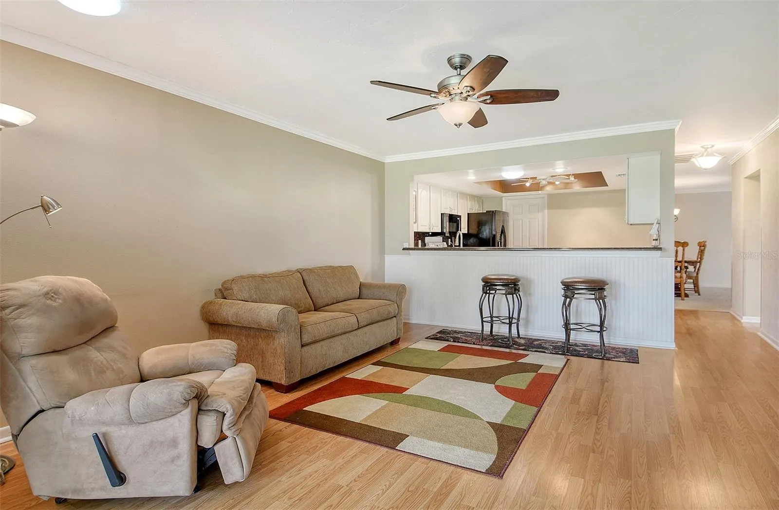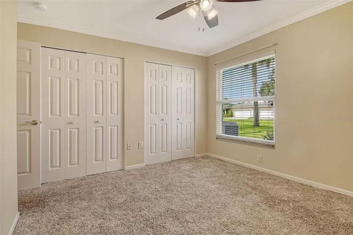 This approximately 1,600 square foot house offers two bedrooms and two bathrooms. The property features a pool for year-round enjoyment. Crown molding throughout the home adds an elegant touch. The roof is new, providing peace of mind. The air conditioning system is newer, ensuring comfortable climate control. The hot water heater is also new, guaranteeing a reliable supply of hot water. The location of this home is a desirable attribute. Ceramic tile flooring and new carpet create a welcoming ambiance. The kitchen has been updated with modern appliances and finishes. The bathroom has also been updated with a fresh, contemporary design. The homeowners association fees are low, making this an affordable option.