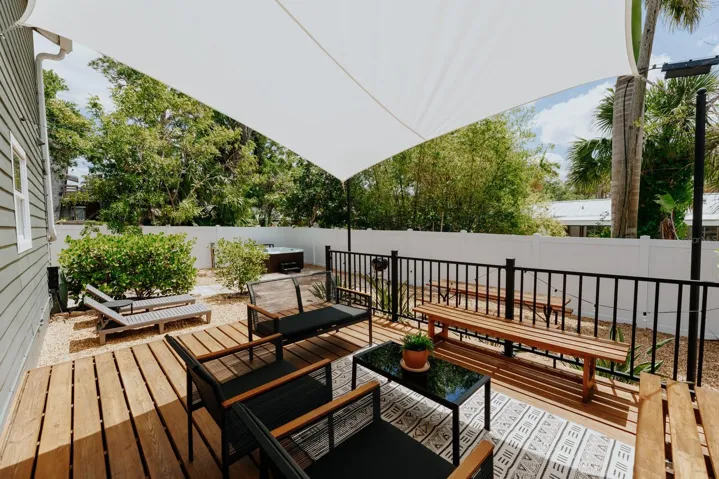 Beautifully modern, FURNISHED 4-bedroom, 2-bath home is nestled in a tranquil Florida neighborhood (the highly sought-after Arlington Park) just minutes from Sarasota’s vibrant downtown. It offers the perfect balance of luxury and comfort. The main floor features the primary bedroom with its ensuite bathroom, offering convenience and privacy. Upstairs, the second level boasts three nicely sized bedrooms, a full bath, and a dedicated laundry room, creating a thoughtful layout for family or guests. Inside, you’ll find updates throughout: luxury vinyl plank flooring, crown molding, plantation shutters, and fresh paint inside and out. The kitchen is beautifully equipped with updated cabinetry, granite countertops, and stainless steel appliances—a space that’s as functional as it is elegant. The seamless layout flows into a dreamy, meticulously designed backyard for relaxation and entertaining. A brand-new hot tub, stone paver walkways, sun loungers, and outdoor dining areas create your own private resort. With new PVC fencing, an updated AC system, and charming landscaping, this home is as practical as it is stunning. Currently used as a high-producing Airbnb, this property comes with rental information available upon request. At the same time, it would make a perfect year-round residence, second home, or vacation rental, offering versatility and long-term value. The location is just as extraordinary—5 minutes to Sarasota’s remarkable downtown with boutique shops, restaurants, and marina sunsets, and only 5–6 miles from the best powder sand beaches in the U.S., including Siesta Key, Lido, and Turtle Beach. Around the corner, you’ll find the Arlington Aquatic Center, tennis and basketball courts, a nature trail, and a shaded playground, offering endless options for recreation. Luxuriously designed and stylishly decorated, this home truly delivers comfort, beauty, and lifestyle all in one.