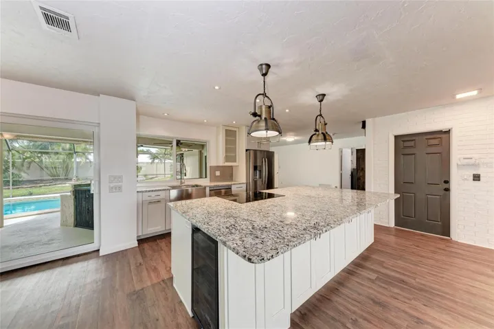 Welcome to your new spacious home in the beautiful waterfront neighborhood of Sorrento Shores. As you approach this three bedroom, three bath POOL house you will notice the quiet charm that this highly sought-after neighborhood provides. The streets are lined with tropical fruit trees, palms, and plants that create a tranquil atmosphere. The open concept, split floor plan, and wonderfully updated home provides plenty of room for entertaining guests or privacy to stop and relax after a long day. You will love the fact that the great room opens to the covered patio, deck, and blue waters of the in-ground pool and screened-in lanai. The outdoor entertaining space is fantastic and the pool was just refinished. In addition, brand new hurricane windows were just installed to make the space quiet and safe. This home is located a short bike ride or drive to Nokomis Beach. Sorrento Shores is ideally situated between Sarasota and Venice. This allows quick access (a fifteen minute drive) to six different gulf beaches and all that the gulf coast has to offer. It is only minutes from historic Venice Island which boasts shopping, restaurants, and breath-taking sunsets. SORRENTO SHORES ALSO HAS A DAY DOCK FOR RESIDENTS TO USE. LAWN CARE AND POOL CARE ARE BOTH INCLUDED IN THE RENT PRICE.