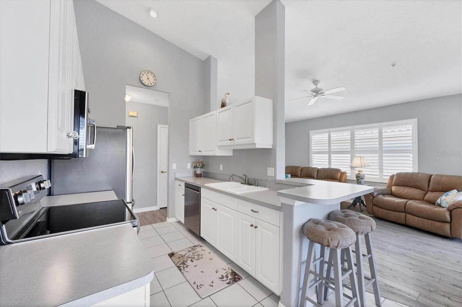Live the Gulf Coast lifestyle at Casa Di Amici, a stylish second-floor end unit condominium in the lovely gated community of Venetia in Venice. With 1,383 square feet of well-designed living space, this three-bedroom, two-bath home offers a seamless blend of comfort and serenity in a beautiful lakeside setting. Start your mornings on the private screened lanai with serene water views or unwind beneath soaring cathedral ceilings in the open-concept living area. The kitchen is thoughtfully equipped with stainless steel appliances, making everyday living and casual entertaining effortless. The split-bedroom layout ensures privacy, with the primary suite featuring a walk-in closet and an en-suite bath with dual vanities. Ceramic tile and vinyl flooring flow through the main living spaces, while carpet and spa-inspired paint tones in the bedrooms create a soothing, move-in-ready retreat. Many upgrades including a new air-conditioningunit (2024), offering comfort and peace of mind. Some furniture included with the purchase. Residents enjoy resort-style amenities including three heated pools, fitness center, clubhouse and courts for tennis, pickleball, basketball and bocce. A one-car garage and additional outdoor parking enhance convenience. ust four miles from Gulf beaches and minutes from downtown Venice, this residence offers proximity to award-winning golf, dining, shopping and year-round recreation. Schedule your private tour today and see why Casa di Amici residents love the Venetia Community so much!