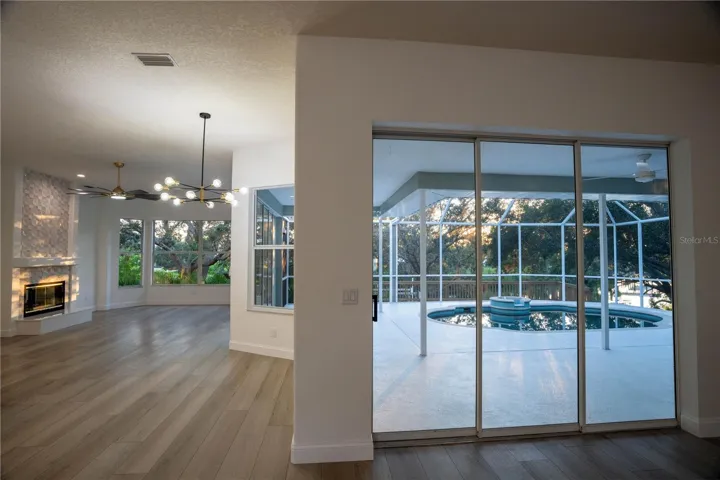TOTALLY UPDATED POOL HOME WITH BOAT LIFT AND GULF ACCESS. This is your chance to live in a great home on the water without being in a flood zone. This is X flood zone. No flood insurance required. This 3 bedroom 2 bath home has all new LVP flooring, kitchen, bathrooms, appliances, fixtures, trim, paint, outdoor kitchen and paver driveway. All cabinetry is dove tail with soft close feature, and all counters are quartz. The floor plan is spacious, bright and open with high ceilings, huge windows, and a wood burning fireplace that is shared between the family room and the 3rd bedroom or den. The open kitchen is amazing and overlooks the family room. The living room, family room and primary bedroom all have large windows and sliders leading to the screened and covered lanai and pool. The outdoor living space is beautiful and tranquil with an awesome view of your shade trees, dock and river. Enjoy watching the visiting Manatee, jumping Mullet, and rolling Tarpon from your updated dock. After boating for the day, you can lift your boat out of the water, jump in the pool, and cook the catch of the day at your amazing outdoor kitchen. Then have a cocktail and watch a beautiful sunset from your shaded deck. River Landings also has a community pool and dock, and is only a few miles to I-75. Low HOA and no CDD fee. This location is convenient to Lakewood Ranch, UTC Mall, Sarasota, Bradenton, restaurants, shopping, and golf.