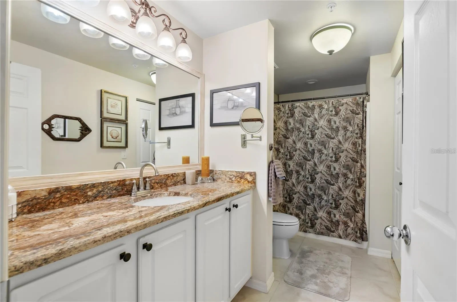 RARE to FIND this UNFURNISHED 2-bed, 2-bath SINGLE LEVEL, condo WITH an OVERSIZED GARAGE in Luxurious Resort Style living in Las Palmas. Living room has access to the lanai which has sliding impact doors and a view overlooking a pond with relaxing sound of a fountain and wildlife to watch while having your morning coffee! Or enjoy a mid-day grilled cheese sandwich on an electric grill. Primary bedroom has walk in closet, and an ensuite bath with soaking tub. Second bedroom is LIGHT and BRIGHT with the same view as lanai through the large impact windows also! Kitchen has granite counter and is adjoined to a dining area. Las Palmas has welcoming amenities of two heated pools, a fitness center, tennis courts, and a clubhouse with billiards and an outdoor kitchen with electric grills. Then we have LOCATION! LOCATION! LOCATION!!! Just a short distance is Benderson Park, the 600-acre with a picturesque lake, and world-class rowing competitions. ALSO, the famous UTC MALL is so close for lots of shopping and dining! An OVERSIDED garage is just a short walk across the parking lot, for your vehicle, bikes, golf clubs, and beach gear! Don’t miss this RARE find at Las Palmas!!!