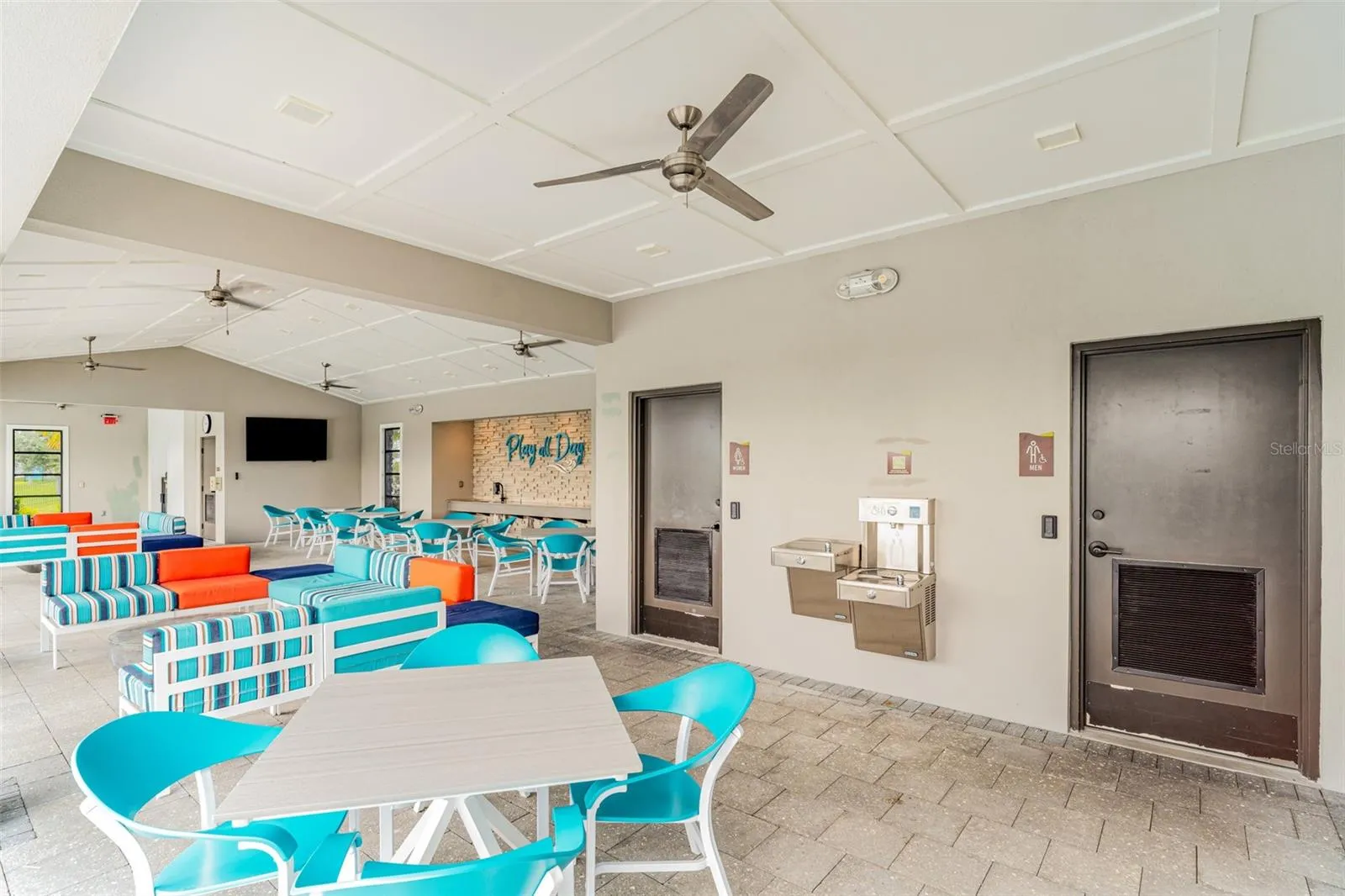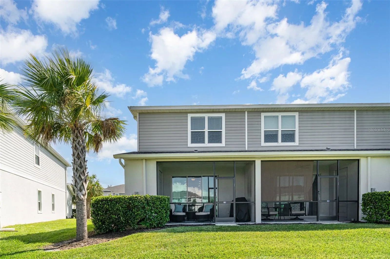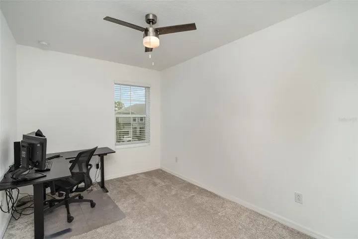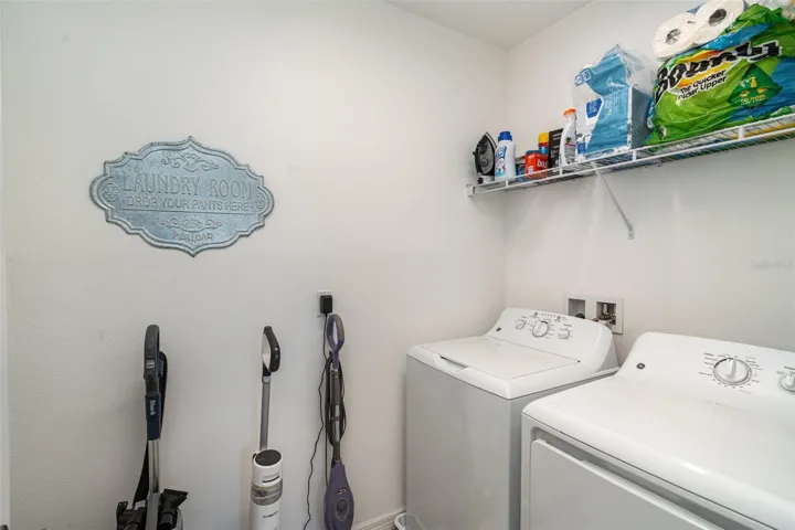 Upstairs, the split-bedroom layout offers privacy and flexibility. The primary suite boasts two walk-in closets and a spa-like en-suite bath, while two additional bedrooms share a full bath. The convenience of an upstairs laundry room makes daily living effortless. Plus, the impact glass windows on the top floor provide storm protection without the need for hurricane shutters.