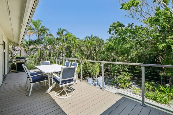 As you approach the property, you’ll notice the gentle slope of the lot from the street up to the main entrance, framed by lush palms, mature oaks, and banyan trees. The double-door entry opens to an inviting, open-concept great room that seamlessly connects to a spacious outdoor deck overlooking the backyard and pool area below.