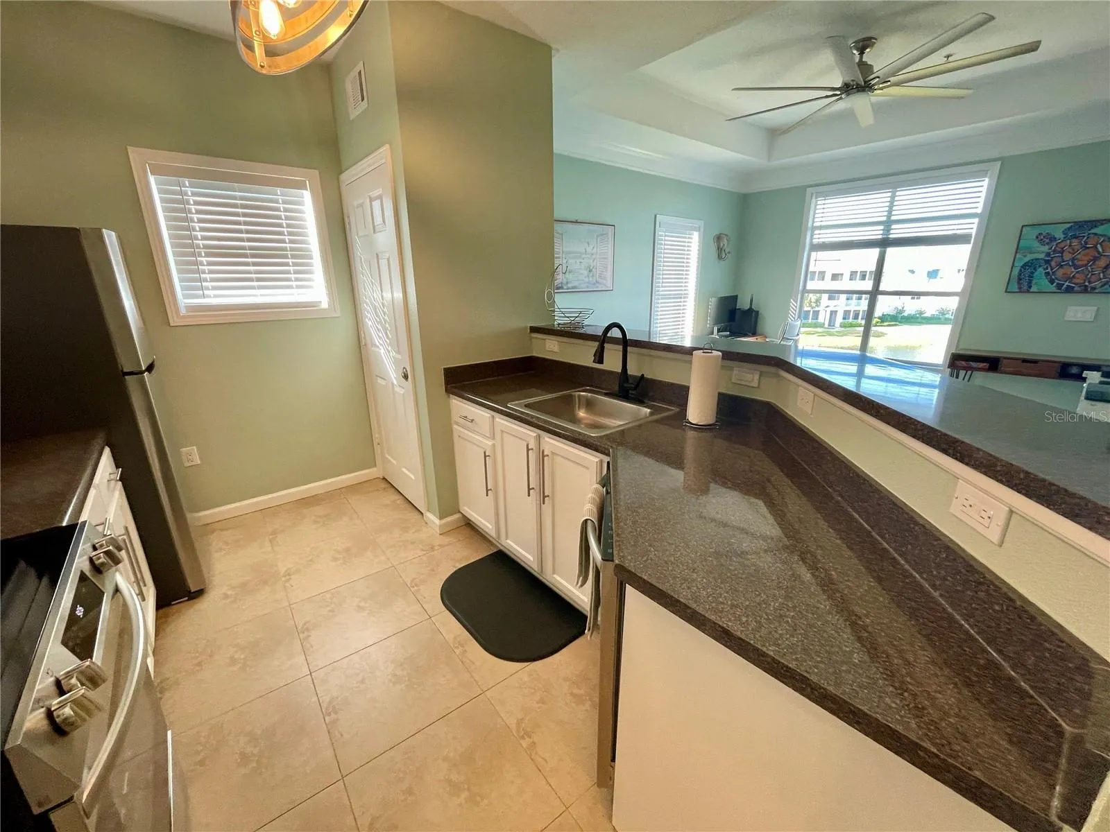 For Rent! Move-in special half off of first month rent! Unfurnished Annual Rental! This beautiful top-floor, corner unit sits in the best location in the community with penthouse views of the resort style amenities like the community pool, serene pond, and resident exclusive clubhouse with fitness center. With higher ceilings than most units in the community and increased windows the lighting is unmatched when paired with the western frontage, beautiful sunsets can be seen over the pond from the large, fully screened in lanai. Stepping inside, you will immediately notice the all new and easy to clean Luxury Vinyl Plank flooring that spans throughout the space as well as the fresh coat of paint that brightens up every day. Walking into the kitchen you will surely appreciate the vast amounts of counter space to work with and all new stainless steel appliances fit for any level of chef. In the bedroom there is plenty of space for a king-sized bed as well as a spacious walk-in closet with plenty of shelves and hang-up space. This 1 bed 1 bath unit offers a stress free move in to live a comfortable life in the desirable gated community of Palms of Cortez. Just a short walk from Wal-Mart and an assortment of dining and shopping options or a short drive to the world class beaches of Anna Maria Island and the excitement to be had there, you will never run out of things to do. 1 dog allowed 20lbs or less with $150 one-time pet fee and $25/month pet rent. Washer and dryer included with the unit.