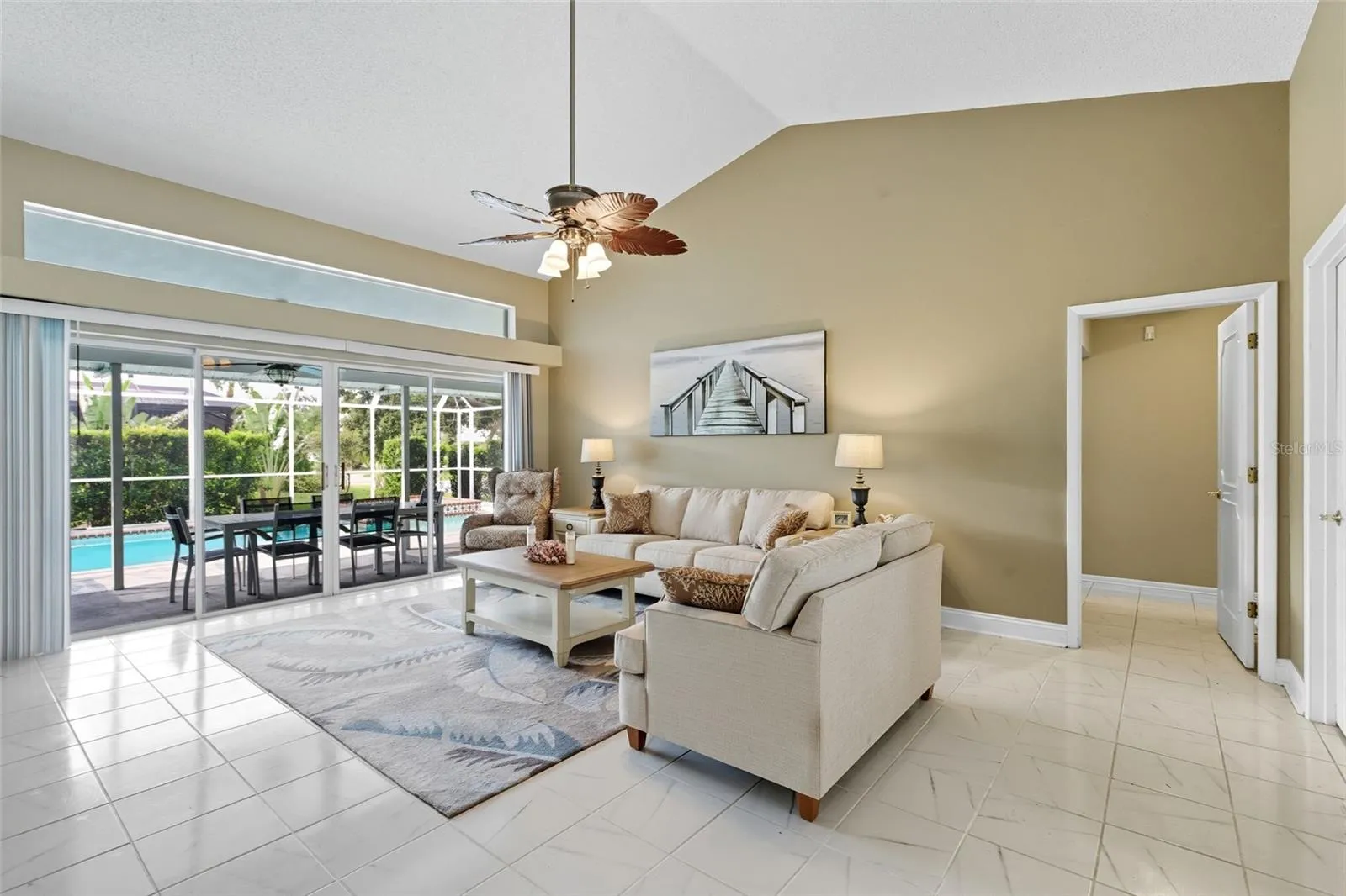 As you arrive, the mature tropical landscaping and stately curb appeal immediately set the tone. Step inside, and you’ll find a generously sized home designed with both relaxation and entertaining in mind. The heart of the home flows seamlessly into the outdoor oasis, where a sparkling private pool invites you to spend endless days under the Florida sun. Whether hosting friends for a casual barbecue, unwinding with a sunset swim, or enjoying your morning coffee poolside, this space truly embodies indoor-outdoor living.