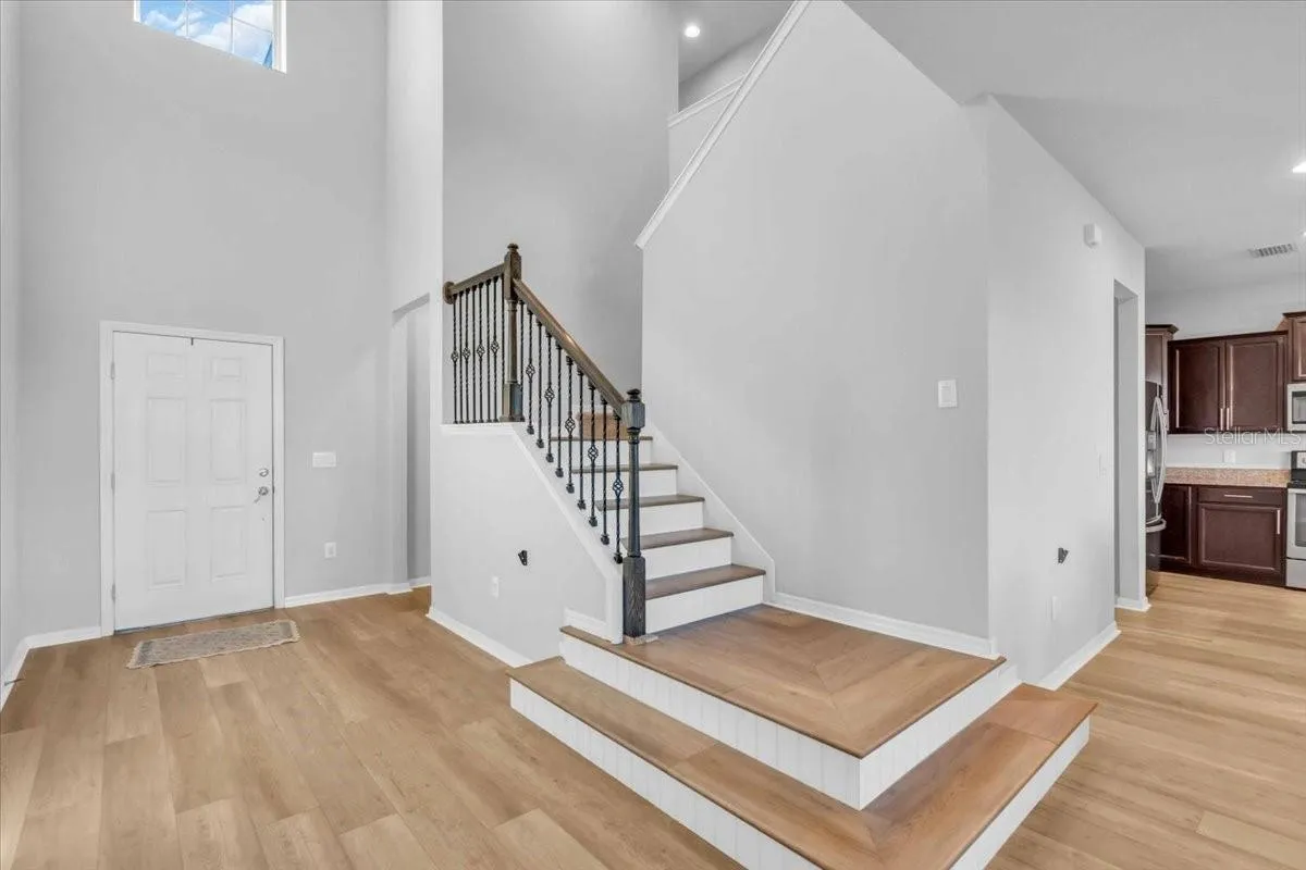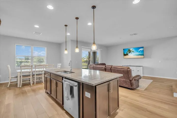 Welcome to this inviting lakefront home offering the perfect blend of comfort, style, and peace of mind. With 3 bedrooms, 2.5 bathrooms, and a spacious loft, this residence was thoughtfully designed to fit both everyday living and entertaining.The open-concept main floor showcases a bright family room, dining area, and a modern kitchen with stainless steel appliances, ample cabinetry, and a large center island that serves as the heart of the home. New luxury vinyl plank flooring, plush carpet, and a brand-new AC system ensure a fresh and worry-free lifestyle for the next owner. Upstairs, the generous primary suite features an en suite bath with a soaking tub, walk-in shower, and dual sinks, creating a private retreat. Two additional bedrooms and a versatile loft provide flexible living space for family, guests, or a home office. Step outside to a fenced backyard overlooking the lake which is the perfect setting for morning coffee or evening relaxation. This home also comes with hurricane shutters, offering added safety and peace of mind. The HOA makes life even easier with access to a clubhouse, resort-style pool, fitness center, and scenic walking paths, so every day feels like a getaway. With major updates already complete and community amenities at your fingertips, this home is truly a stress-free, move-in-ready opportunity for today’s buyer.