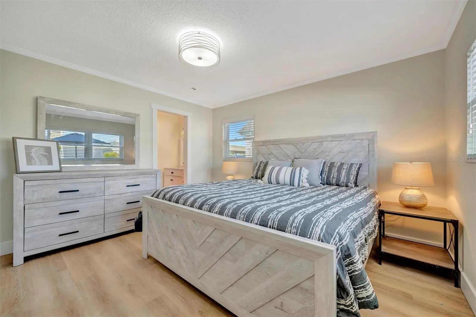 Inside, you’ll find a bright and airy layout with fresh paint, new 22ml luxury vinyl plank flooring throughout the kitchen, living areas, and bedrooms, plus ceramic tile in the baths. Peace of mind comes with hurricane-rated windows and doors and a long list of upgrades: