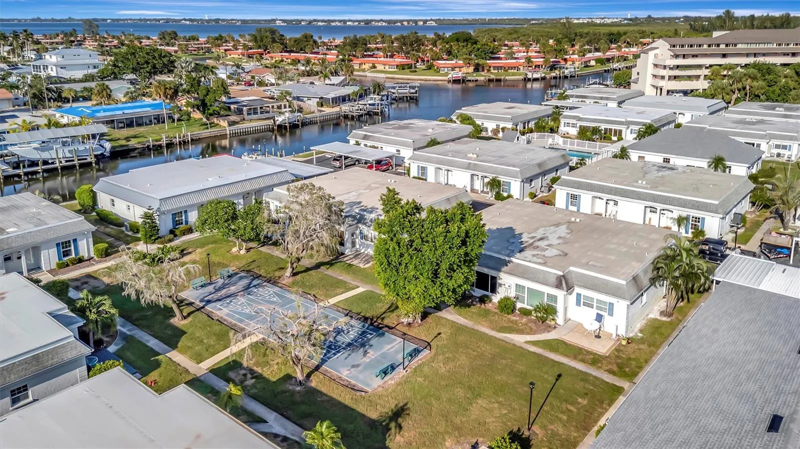 The condo fee covers nearly everything—water, sewer, trash, cable, internet, building and flood insurance, exterior maintenance, clubhouse, pool, and shuffleboard. Rentals are permitted immediately with no waiting period.