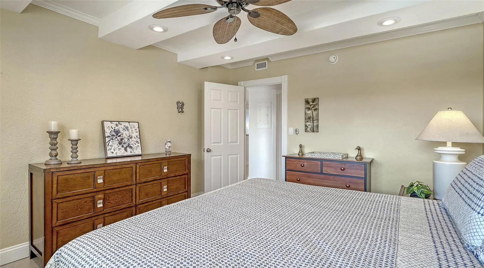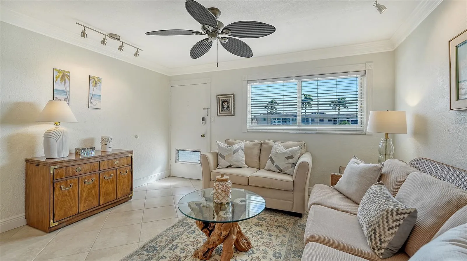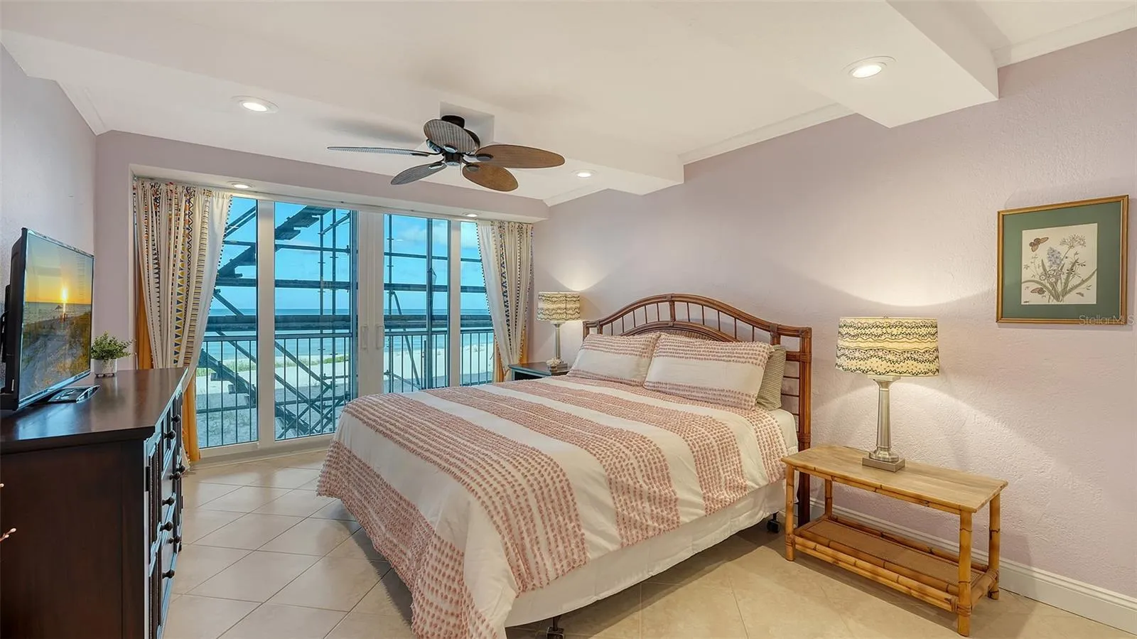 The interiors blend relaxed sophistication and modern comfort, featuring tray ceilings, recessed lighting, impact rated windows and door, and a soothing neutral palette that complements the surrounding seascape. The updated kitchen is equipped with stainless steel appliances and ample cabinetry, seamlessly connecting to the living and dining areas for effortless entertaining. A newly screened-in private lanai extends the living space outdoors—perfect for morning coffee, sunset cocktails, or simply listening to the gentle sound of the surf.