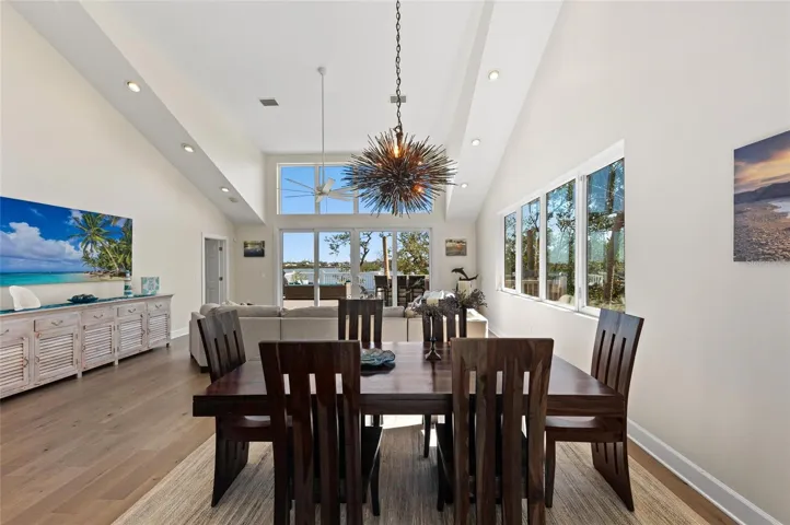 Step into a world where the horizon meets the sea and every sunset paints a masterpiece. This exceptional cedar-sided residence on exclusive Casey Key offers the perfect blend of contemporary elegance and natural beauty along an eight-mile stretch of pristine shoreline. The home features three spacious bedrooms, each with a private ensuite, plus a beautifully appointed half bath on the lower level. The open-concept living area is flooded with natural light and showcases soaring vaulted ceilings, creating a sense of space and serenity. Brand-new engineered hardwood floors add warmth and sophistication throughout. The chef-inspired kitchen is a showpiece, complete with a stunning backsplash, quartz countertops, and high-end stainless steel appliances—ideal for both culinary creativity and entertaining. A stylish dry bar with full-view leaded glass and a modern barn door adds a perfect touch of charm and convenience. Glass doors open to a large composite deck overlooking tranquil waters, providing an ideal setting for gatherings or quiet relaxation. The infinity-edge pool enhances the seamless connection to the waterfront, offering an unrivaled sense of luxury. A private stairway leads to your deeded dock and assigned boat slip with direct access to the Intracoastal Waterway. The dock is currently being assessed for hurricane-related repairs, with quotes underway. Upstairs, a versatile loft offers space for a den, office, or sitting area with sweeping views of the main living area. The primary suite boasts panoramic views of Little Sarasota Bay, while the second bedroom features a private outdoor sitting area, perfect for enjoying the sounds of the Gulf and the surrounding natural beauty. Sleek modern infinity edge pool with underwater seating and massage jets allows you to relax the day away! This residence is both secure and smart, featuring a state-of-the-art security system with optional local police connection and advanced home automation for lighting, climate, and security. Designer window treatments and thoughtful architectural details complement the home’s refined modern aesthetic. Casey Key offers the ultimate in island living, from kayaking and jet skiing on the bay to walking or cycling past the island’s scenic multimillion-dollar estates. Enjoy boating, fishing, dolphin watching, and quick access to Sarasota’s renowned beaches, fine dining, shopping, and cultural attractions. Conveniently located near I-75 and just 10 minutes from private aviation at the Island of Venice, this property combines serene coastal living with unmatched accessibility. Don’t miss this rare opportunity to own a stunning waterfront retreat on Casey Key. Schedule your private showing today and experience the pinnacle of coastal luxury.