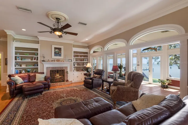 STUNNING RIVERFRONT CUSTOM ESTATE ON 1.42 ACRES WITH 223 FEET OF DIRECT MANATEE RIVER FRONTAGE!!! Tucked behind a private gated entry, a winding drive meanders beneath a canopy of majestic, centuries-old oak trees, setting the stage for a home that exudes timeless elegance and refined Southern charm. This elevated brick estate, masterfully designed and impeccably maintained by its original owners, blends classic architectural sophistication with the serene beauty of its natural riverfront surroundings. Spanning over 4,200 square feet of inspired living space, this residence offers 3 bedrooms plus a dedicated office and 3.5 baths, all crafted with meticulous attention to detail, volume ceilings, & an abundance of natural light. The grand foyer makes a striking first impression with its tall ceilings, custom stained-glass accents, and sweeping staircase. Just beyond, an office provides a perfect space for working from home. The heart of the home is the expansive great room, where panoramic water views steal the spotlight. A stately fireplace framed by built-ins, 10-foot ceilings, and multiple gathering areas create a welcoming space for both intimate evenings and large-scale entertaining. The gourmet chef’s kitchen is as functional as it is beautiful, boasting white custom cabinetry, granite countertops, premium stainless-steel appliances, and an oversized center island with additional storage. Adjacent is a butler’s pantry, fully outfitted with additional cabinetry, prep sink, second dishwasher, refrigerator, and storage. An airy, light-filled dining room framed by oversized windows overlooks the river, providing a gorgeous backdrop. For year-round enjoyment, the enclosed Florida room offers walls of glass that bathe the space in natural light and water views. The luxurious main level primary suite is a true retreat, featuring a large bay window, dual walk-in closets, and a private sitting area. The spa inspired ensuite bath offers his & her vanities, a Jacuzzi tub, and a walk in shower. Upstairs, two generously sized guest suites each include walk in closets & private ensuite baths, while a spacious bonus area provides a comfortable lounge or playroom. Above the garage, a sprawling flex room awaits transformation into a hobby room, media retreat, or ultimate “man cave.” This estate also offers abundant parking and storage with a 2-car attached garage and a separate 3+ car detached garage, perfectly suited for car collectors or hobbyists. Outdoors, the riverfront grounds are nothing short of magical. Beneath the shade of towering oaks, relax in Adirondack chairs and take in the mesmerizing sunsets. With deep water access and no bridges, this property is a boater’s dream with easy access to Tampa Bay & the Gulf. There is also ample space for a resort-style pool to further elevate the lifestyle experience. Situated just minutes from the Bradenton Yacht Club and the natural splendor of Emerson Point Preserve’s 365 acres of trails and kayak launches, this home offers an unparalleled balance of privacy, recreation, and convenience. The world-famous beaches of Anna Maria Island are just a short drive away and quick access to I-75 for effortless travel. With no HOA or deed restrictions, your waterfront lifestyle can be as relaxed—or as indulgent—as you desire. This extraordinary estate represents the pinnacle of riverfront living—an irreplaceable retreat of timeless beauty, elegance, and unparalleled access to Florida’s most coveted waters.