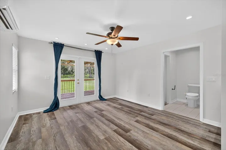 Private, quiet one-acre property in the heart of expanding residential and commercial development—greatly functional layout and endless potential. This 3 bed 2.5 bath home features an updated kitchen with walk-in pantry, renovated baths including a spacious primary shower with dual sinks, two walk-in closets plus custom shelving in every closet, and a centrally located laundry room with custom cabinetry. A large back porch serves as the perfect gathering space overlooking a fully fenced yard. Huge circle driveway and back yard drive-through access. Outdoor living shines with a 1,300 sq. ft. putting and chipping green, axe-throwing board, chicken coop, and dog pen. Three versatile outbuildings expand the use of the property: two are air-conditioned, one for storage/garage, and one is built as a true armory with steel bars throughout the walls, ceilings, doors, and windows plus battery-backup security. Another with a cozy front porch and half bath is ideal for a home gym, office, or hobby space. Energy efficiency upgrades include spray-foam attic insulation and a whisper-quiet, zone-controlled ductless mini-split system (~5 yrs), paired with newer appliances (washer, dryer, refrigerator, dishwasher ~3 yrs) and a roof about 7 yrs. Conveniently located yet tucked away, this property offers a lot today with endless potential for tomorrow.
