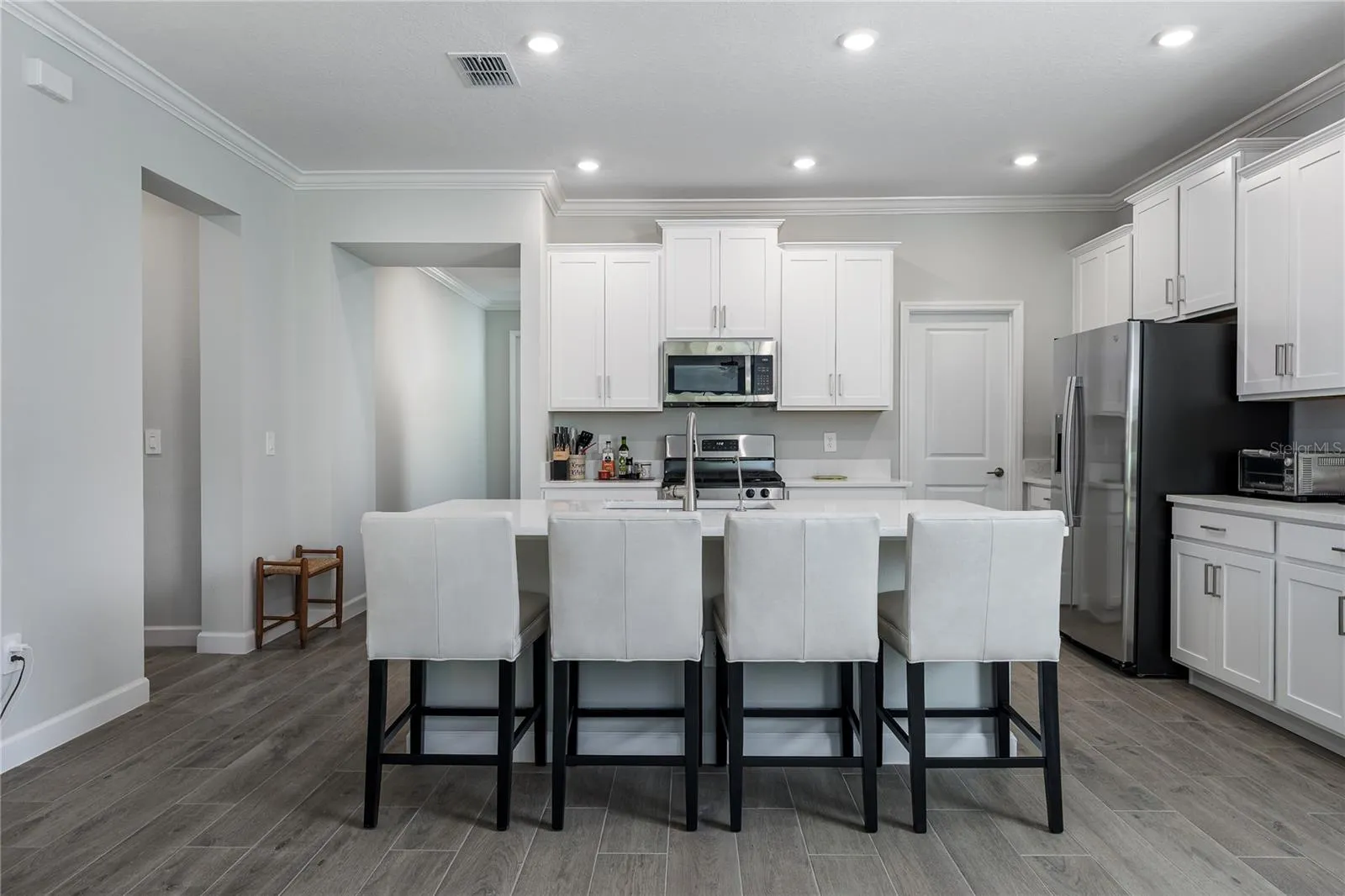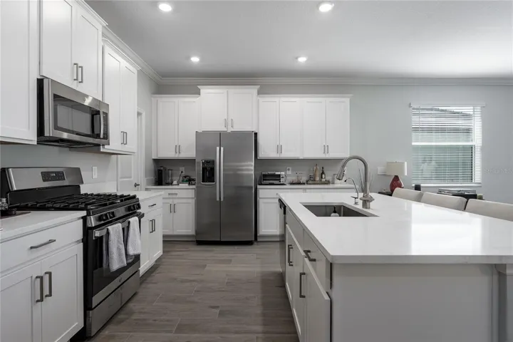 Experience resort-style living in this spacious single-story home located in the vibrant Prosperity Lakes Active Adult Manors community. This well-designed floorplan features an open layout with a versatile flex room and additional storage. The kitchen showcases elegant Shaker-style cabinetry, quartz countertops, stainless steel appliances, and a large center island that flows seamlessly into the dining and family areas—perfect for entertaining. The owner’s suite offers a spa-inspired bathroom with dual sinks, quartz countertops, a glass-enclosed shower, and a generous walk-in closet. Two additional bedrooms provide comfortable space for guests or hobbies. Residents of Prosperity Lakes enjoy an impressive amenity center featuring a clubhouse, resort-style swimming pool, pickleball courts, full-time activities director, fitness center with group classes, outdoor yoga area, and even an on-site restaurant/bar area. Conveniently located near the Little Manatee River, golf courses, shopping, dining, and major highways, this community offers easy access to Tampa Bay, Bradenton, Sarasota, and St. Petersburg.