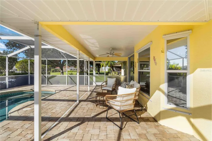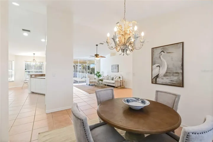 Deep Creek Pool Home — Updated, Private, and Move-In Ready Multiple-offer caliber in 13 days the first time out. Bring your belongings and start enjoying Florida living on day one. Vaulted ceilings and a true split-bedroom plan deliver bright, easy flow. Tile through main living areas; bedrooms feature a mix of carpet and laminate. An eat-in kitchen for everyday meals plus a separate dining room for gatherings. Outside, your private retreat: a sparkling in-ground pool, screened lanai, and paver deck overlooking a serene greenway—no neighbors behind.