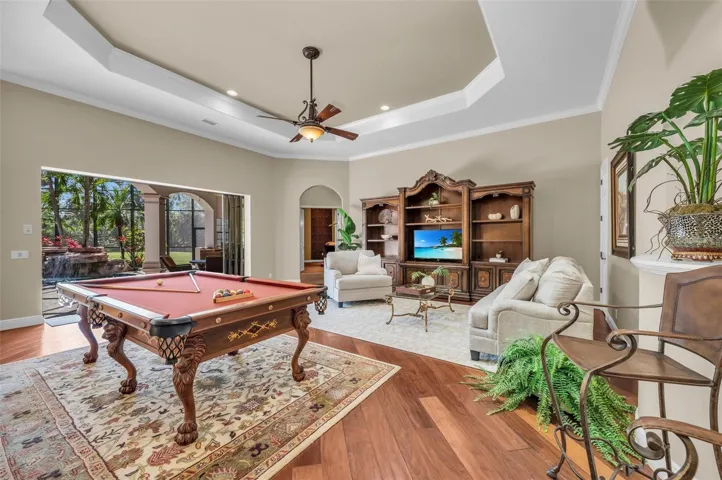 Welcome to your dream short-term getaway—an exceptional custom John Cannon estate where privacy, luxury, and convenience come together on 5 secluded acres in northern Manatee County. Perfect for a seasonal escape, executive rental, or extended family visit, this fully furnished 4-bedroom, 4.5-bath home offers resort-style living just minutes from I-75, I-275, and the vibrant new North River Ranch community. The open-concept layout, gourmet kitchen with Sub-Zero appliances, and expansive great room are ideal for entertaining or simply relaxing in style. Enjoy movie nights in the soundproof theater room, quiet mornings in the private library, or flexible use of the bonus room as a fifth bedroom, home office, or gym. Outdoors, unwind in your tropical oasis featuring a saltwater pool and spa, lush landscaping, and serene garden paths beneath majestic oaks. For outdoor enthusiasts, the 2,000-acre Terra Ceia Preserve offers nearby birding, kayaking, and hiking, while equestrian lovers will appreciate the world-class riding academy just a short walk away, offering programs for riders of all ages. With easy access to St. Pete, Tampa, Sarasota, and Gulf Coast beaches, this one-of-a-kind estate delivers the ultimate Florida lifestyle—without the long-term commitment.