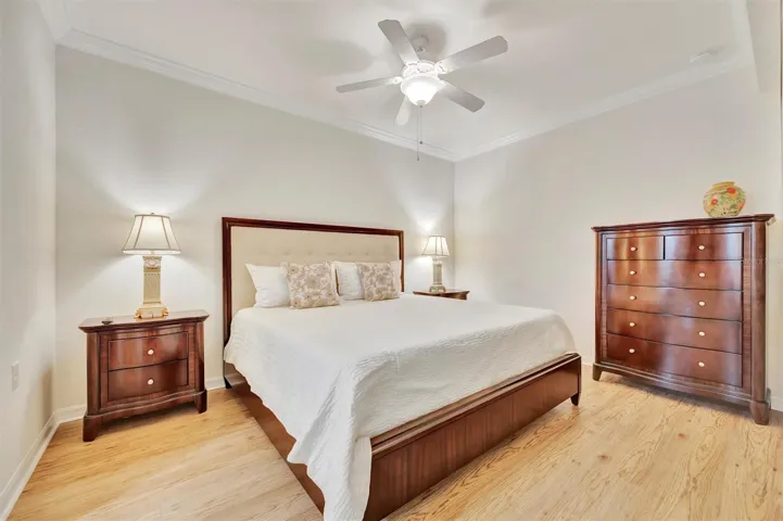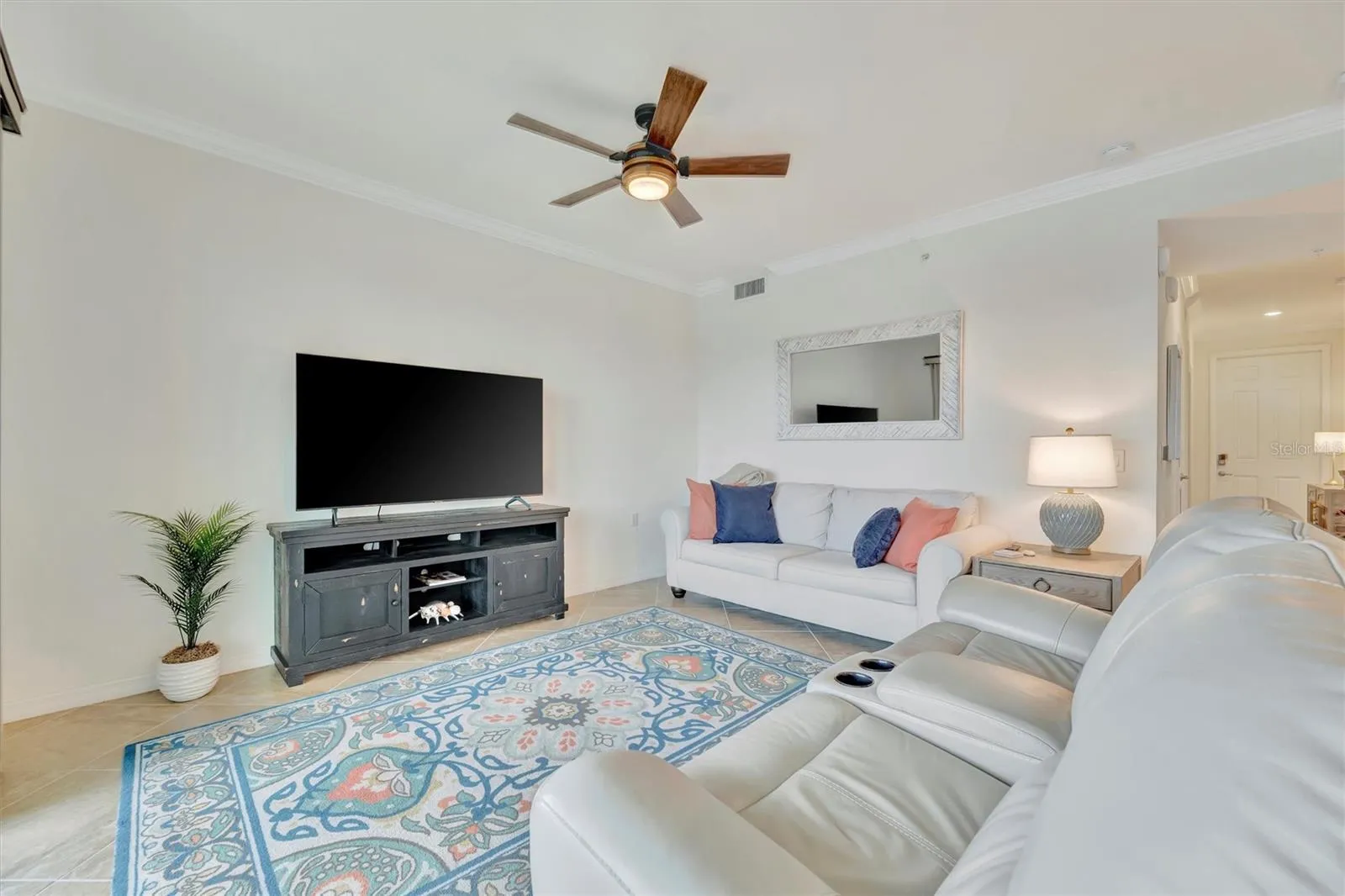 Welcome to paradise! Live in luxury at Lakewood National Golf Club, where residents enjoy membership to the 2 Arnold Palmer designed golf courses. One of the most beautiful and upgraded units in the community, this custom second floor turnkey home offers expansive views of hole #11 on the Commander Course and water views. You will experience wildlife and golf up close and personal from the comfort of your screened-in lanai. This condo offers a luxurious 2-bedroom, 2-bathroom condominium in a prime location. With its spacious layout, this condo is an ideal living space for someone looking for both comfort and luxury. Membership boasts access to 36 holes of golf, 24-hour gated security with patrol, a state-of-the-art fitness center with 24-hour access, an onsite fitness director, a TPI certified personal trainer, and a variety of group fitness classes to choose from, saunas in the men’s and women’s locker rooms, 8 lighted Har-Tru tennis courts, 4 pickleball courts, 2 Har-Tru bocce courts, full-service salon/spa, resort-style pool with waterfall features, a spa, and a lap pool. Enjoy dining at the community’s 2 restaurants – the poolside Tiki Bar & Grill, and the full service on-site dining experience at Deke’s Grill & Palmer Room located inside the newly finished clubhouse. You will find everything you need within this beautiful gated community.