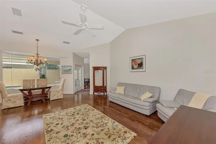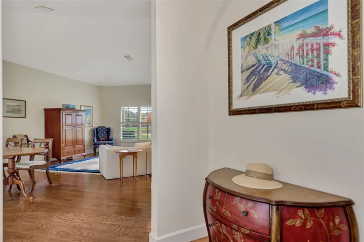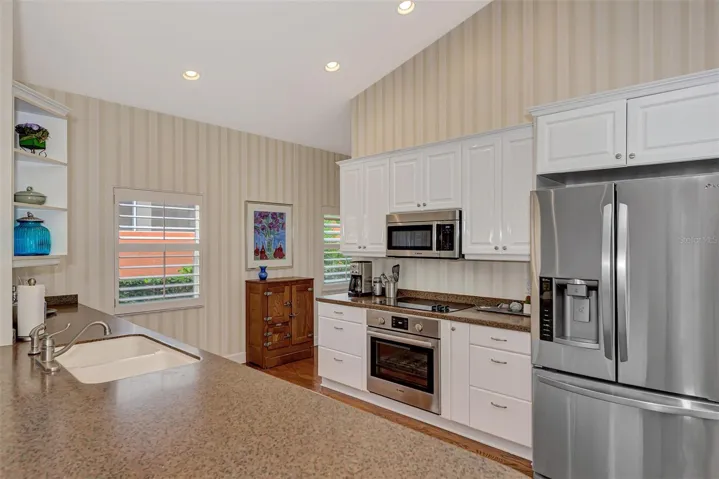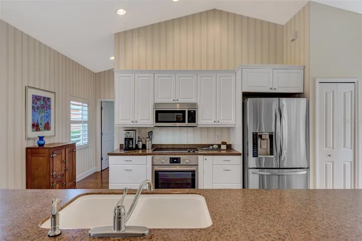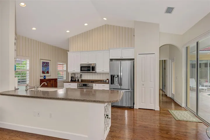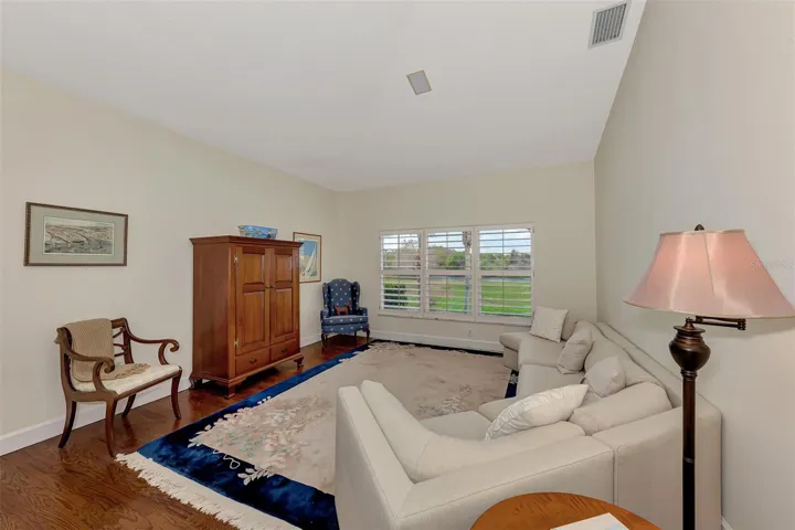 Welcome to your dream home, nestled within the exclusive, gated community of TPC Prestancia Golf and Social Club—a 565-acre oasis of luxury, world-class golf, and serene Florida living. Located in the highly coveted Valencia section, this charming, maintenance-free courtyard-style residence offers over 2,100 square feet of elegant living space, complete with a private pool featuring a soothing waterfall and lush, tropical landscaping. It’s the ideal setting for both tranquil relaxation and entertaining guests. This exceptional home includes a private casita, perfect for guests, family, or versatile use as an exercise studio or home office. With natural light pouring in, a full bathroom, and its own private entrance, the possibilities for this unique space are endless. As you enter the main home, you’re immediately greeted by a bright, welcoming courtyard that sets the tone for the meticulous attention to detail throughout. The open, airy living areas boast high ceilings, beautiful wood floors, and expansive windows that flood the home with natural light while framing peaceful views of the greenbelt and lake / creek. The spacious gourmet kitchen is a true chef’s delight, featuring top-of-the-line stainless steel appliances, generous counter space, and a breakfast bar, all overlooking the oversized family room and dining area. A cozy breakfast nook, highlighted by an aquarium window, provides the perfect spot to savor your morning coffee while enjoying nature’s beauty. The owner’s suite is a private retreat, offering panoramic views, plantation shutters, and a spa-like bath with double vanities, a soaking tub, a walk-in shower, and a generously sized walk-in closet. The split floor plan provides privacy for guests, with a spacious guest room and a full bathroom that conveniently doubles as a pool bath. Additional amenities include a two-car garage, laundry room, and abundant storage space, seamlessly blending practicality with luxury. TPC Prestancia offers optional memberships for golf and social activities, providing access to 36 holes of championship golf, fine dining, and a calendar of engaging social events. The home’s prime location offers unparalleled convenience, with the world-renowned Siesta Key beaches just minutes away, as well as downtown Sarasota, dining, shopping, and the newly extended Legacy Bike Trail. With easy access to I-75 and Sarasota’s airport, this is the perfect setting for both relaxation and adventure. This maintenance-free, luxurious courtyard home at TPC Prestancia is a rare find where comfort, style, and Florida living converge. Call today to schedule your private tour and experience the lifestyle you’ve always dreamed of!