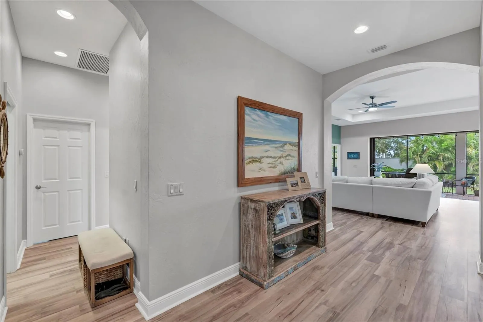 Step inside and be welcomed by a spacious foyer that offers a preview of the home’s inviting interior. To the front, a well-designed office provides both functionality and convenience, while the formal dining room connects seamlessly to the kitchen, making it perfect for holiday gatherings or dinners with friends and family.