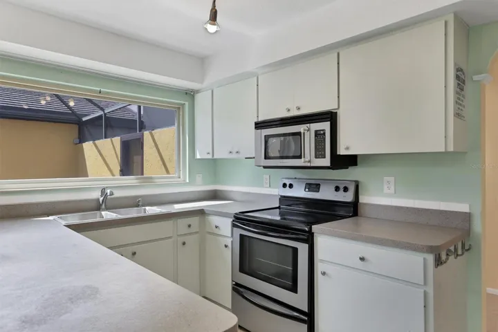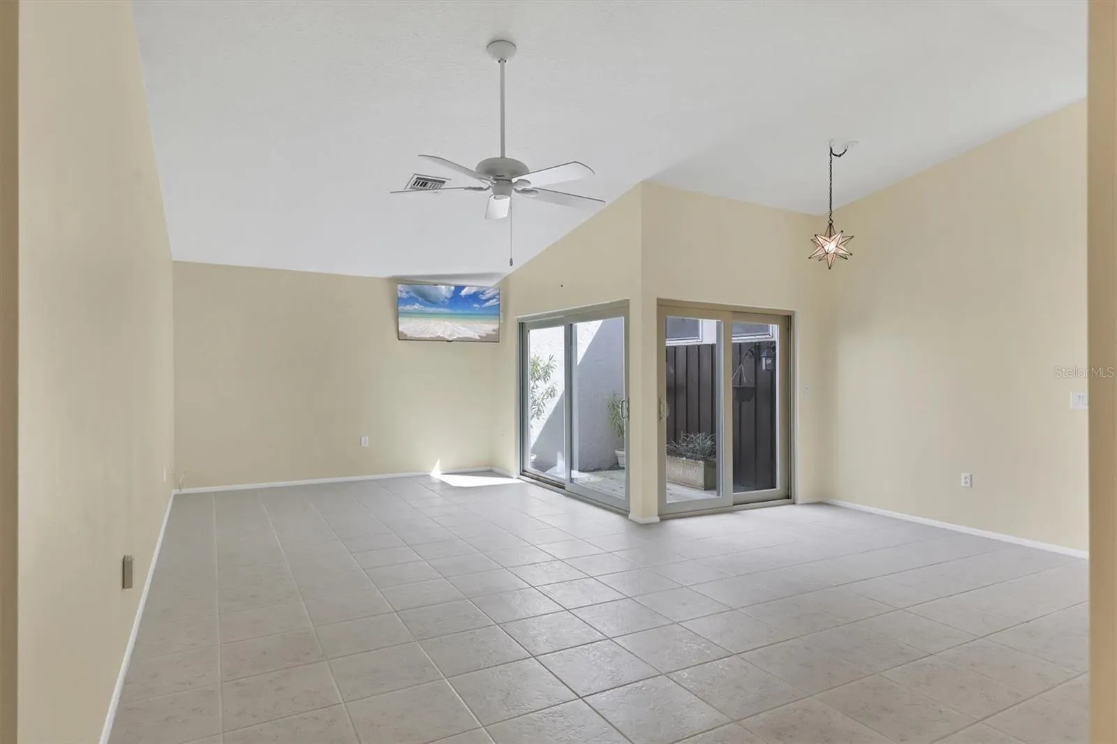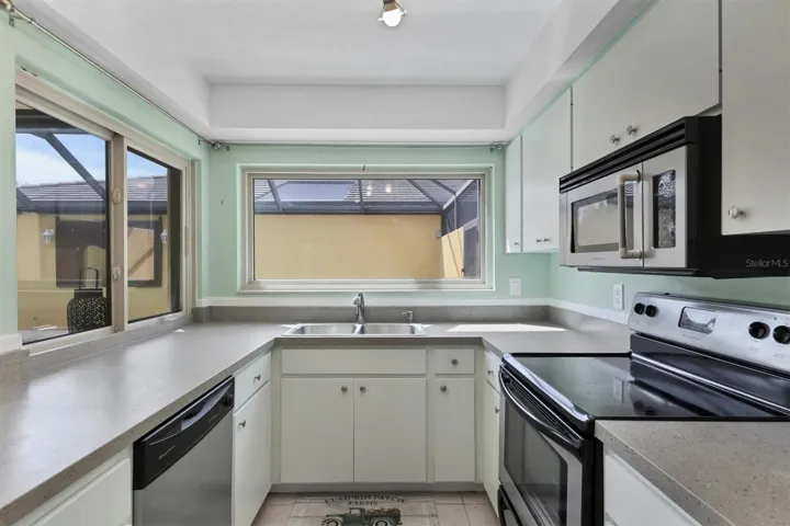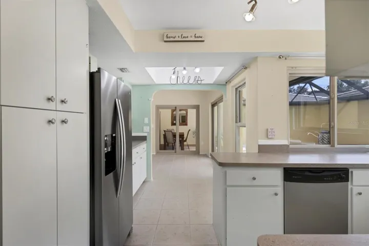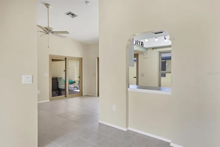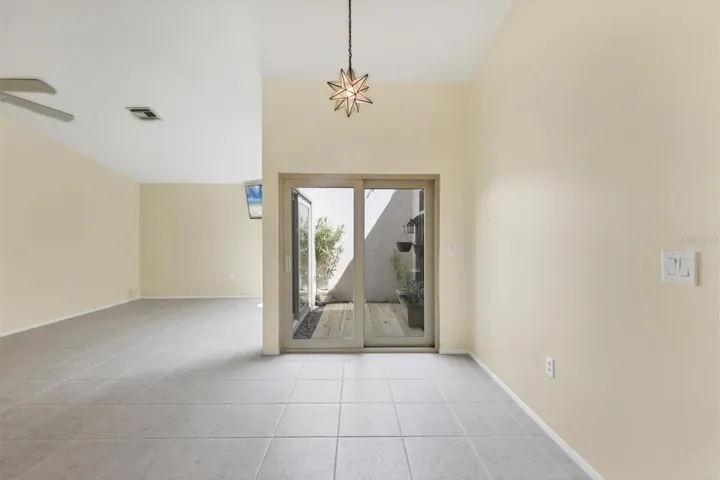 Step into your own private oasis, where the screened lanai and covered patio overlook a sparkling pool framed by lush landscaping. The open-concept living and dining areas flow seamlessly into the courtyard, creating a serene indoor-outdoor lifestyle perfect for entertaining or quiet reflection.