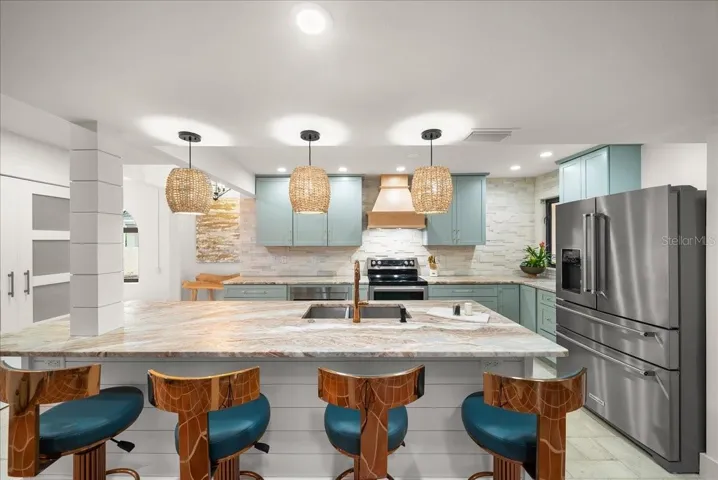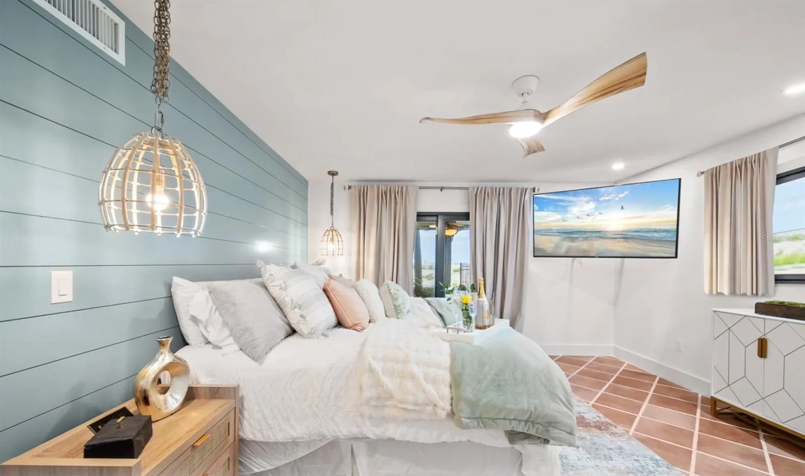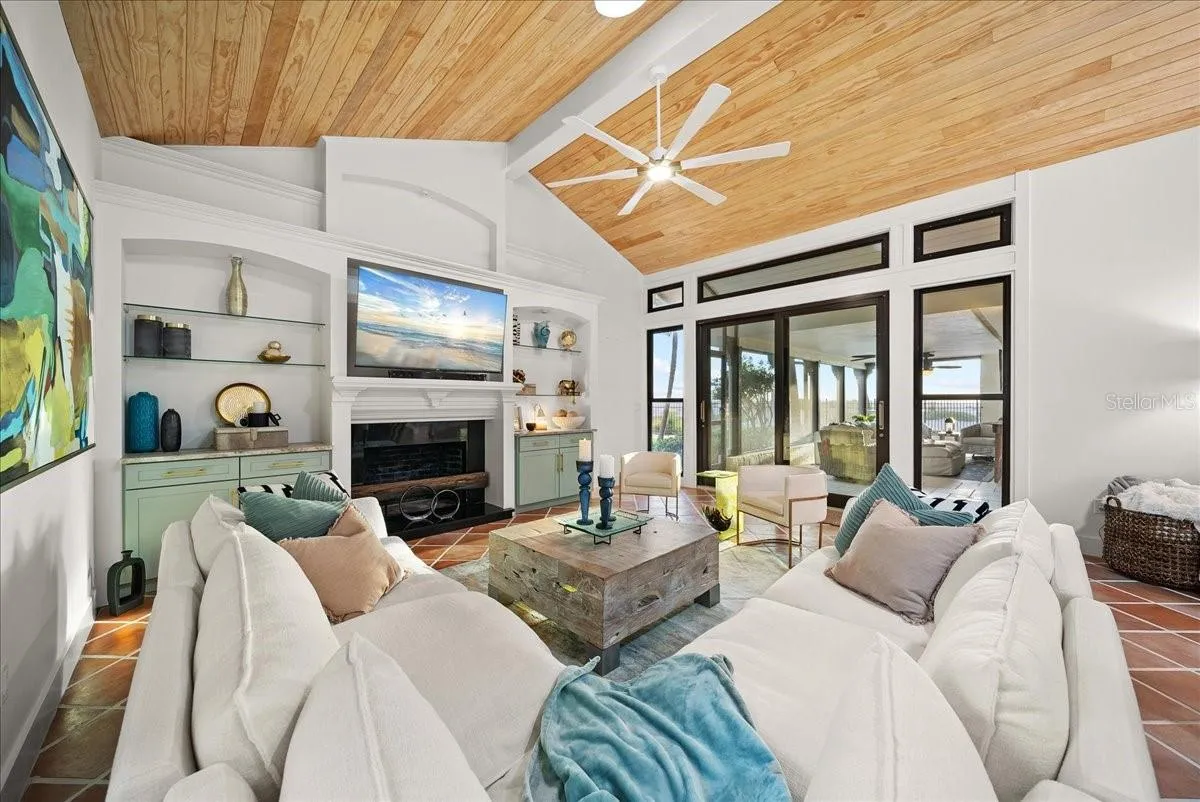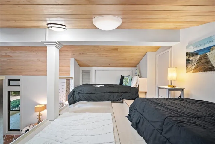 One or more photo(s) has been virtually staged. A Reimagined Gulfside Retreat at Golden Beach. This direct beachfront residence at 718 Golden Beach Blvd #1 redefines coastal living. Encompassing 2,252 sq. ft. with 3 bedrooms, 3 bathrooms, and a loft, the home has been fully renovated with thoughtful detail. Designed for those dreaming of a seasonal getaway or serene year-round sanctuary, this one-of-a-kind condominium lives like a private single-family home while offering the ease of beachfront living. With the Gulf as your backdrop, every moment here feels like a page out of a coastal lifestyle magazine. Inside, elegance meets practicality. Chipped-edge travertine floors guide you to a kitchen with soft coastal tones, new cabinetry, leathered stone countertops, custom pantry shelving, and brand-new stainless KitchenAid appliances with reverse osmosis. The open layout keeps the space as tranquil as the views beyond. The living room unfolds past the kitchen with vaulted Radiata Pine ceilings, terracotta porcelain tile, and a striking wood-burning fireplace. A soon-to-be-installed hurricane-impact picture window frames Gulf sunsets while flooding the room with natural light. Above, a loft accessible by a rolling ladder now has central heat and air, creating a year-round cozy retreat for guests. The primary suite continues the coastal palette with a shiplap accent wall, adorned pendent lights, and sliding doors to the lanai. Directly across from the bed, a new hurricane-rated window is being installed to capture unobstructed Gulf views without leaving your pillow. The ensuite bath has been completely transformed with an oak vanity, granite counters, and a luxurious walk-in shower with pebble stone flooring. A spacious walk-in closet leads to the newly envisioned laundry room, now equipped with a new washer and dryer as well as central heating and air for comfort. Here, large bay windows fill the space with natural light, while a coffee bar, including a wine and beer storage, beverage fridge, and ice maker, creates a space as practical as it is beautiful. A remodeled guest bath features granite counters, new cabinetry, tiled shower, and shiplap. The adjacent bedroom has lanai access and a bright, inviting feel. A third bedroom off the kitchen offers a private suite with full bath, patio entrance, and quick access to the resort-style pool. The lanai seamlessly connects indoors and outdoors—perfect for grilling, laughter, and sunsets. Steps away, the resurfaced pool and private gated beach entrance make relaxation effortless. With few primary residents, Ocean Sands feels like your own enclave by the water. Upgrades include all-new electrical wiring, a brand-new flat roof, and a new elevator in the main building. Offered mostly turnkey furnished with ample parking, it’s move-in ready. The remodeled storage room with built-in cabinets and an outlet can easily convert to a golf cart garage. For peace of mind, the home also features updated wiring with an additional breaker panel, a raised AC unit, and a new tankless water heater. Beyond this coastal sanctuary, Venice offers oceanfront dining at Sharky’s or Fins, Paw Park dog beach, boutique shopping, cafés, and farmers markets on historic Main Street. Nearby hospitals, golf, cultural events, and natural parks make every day an adventure. This home is more than a residence—it’s a lifestyle of quiet luxury and coastal ease. Discover why Golden Beach is the epitome of Endless Summer Living. See virtual tours under the facts & features section.