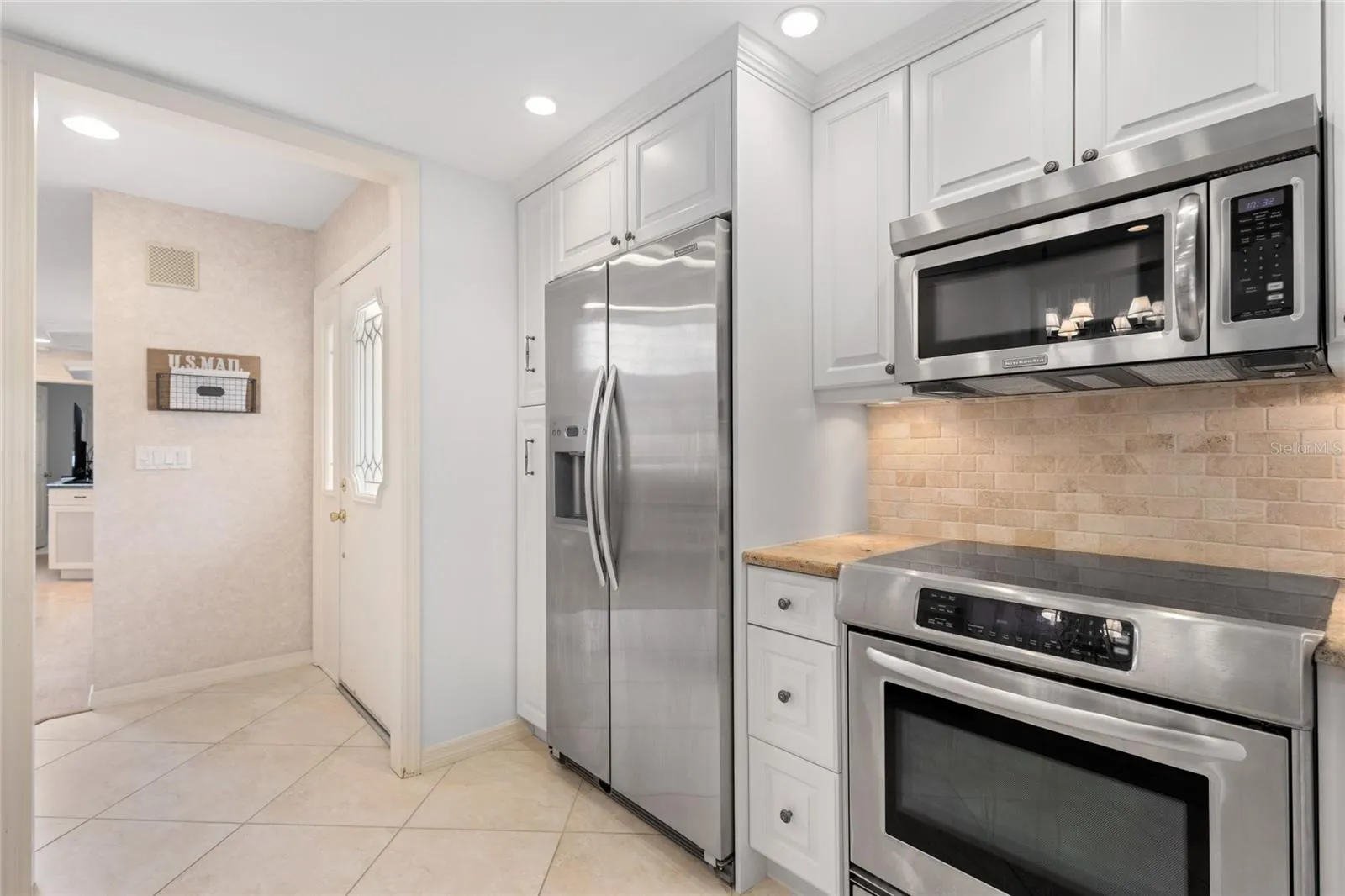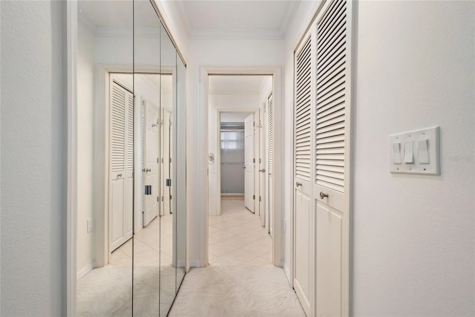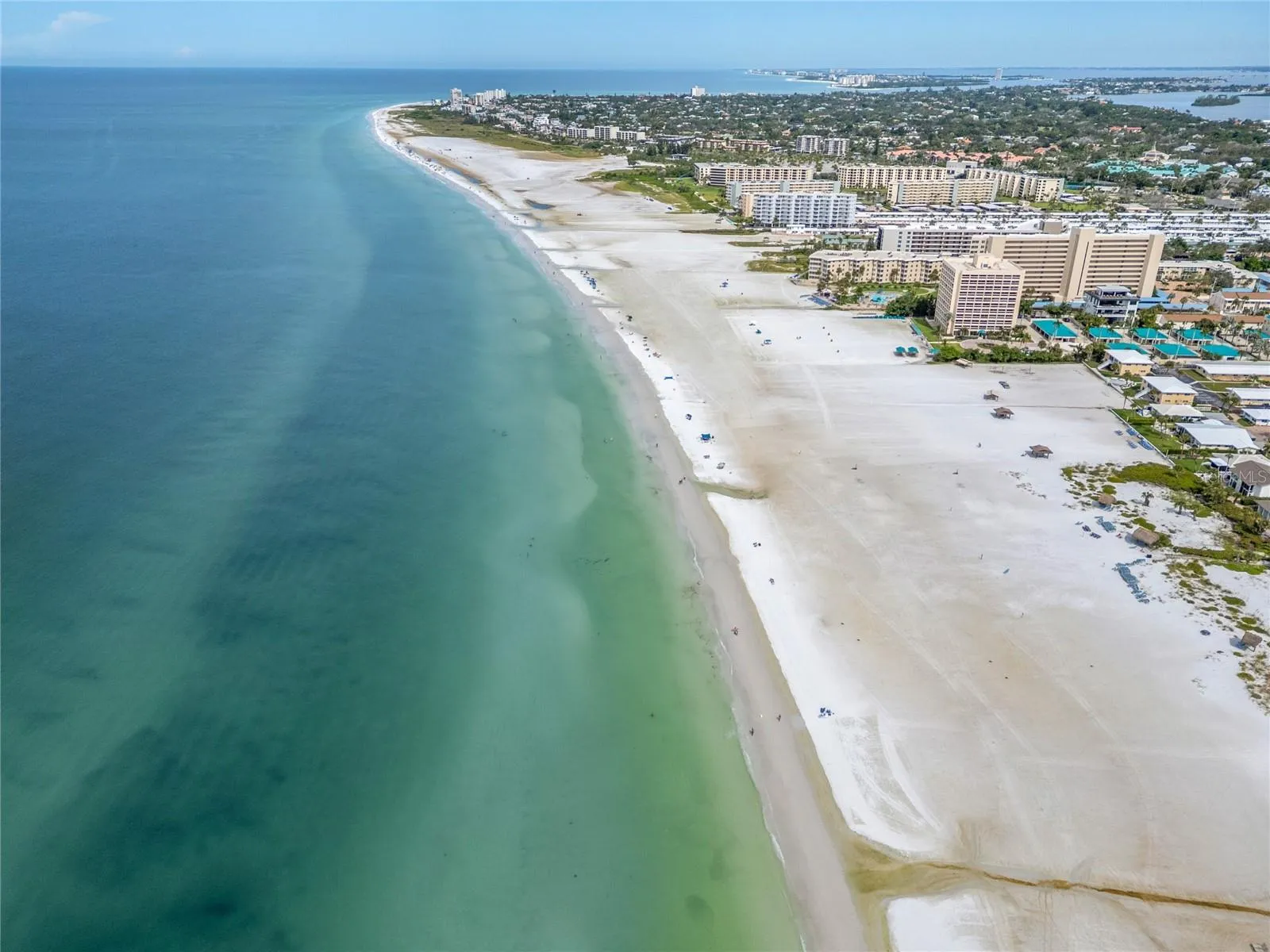 Welcome to coastal elegance and a rare opportunity to own one of only 27 townhomes in the highly sought-after Coquille community, nestled on the picturesque barrier island of Siesta Key, where you are steps to having your feet in the famous soft, white quartz sand that makes Siesta Beach famous. This spacious and light-filled, furnished 2-bedroom, 2-bathroom residence also includes a Florida room and an enclosed study that can easily function as a third bedroom, offering over 1,760 square feet of refined, maintenance-free living in an intimate, boutique townhome complex. Inside, soaring 17-foot ceilings and clerestory windows flood the open living space with natural light, creating a bright and airy atmosphere perfect for relaxing or entertaining. The kitchen features classic white cabinetry, granite countertops, and stainless steel KitchenAid appliances, all seamlessly integrated with the dining and living areas to offer a cohesive and functional layout. The main-level primary suite includes direct access to the enclosed lanai Florida room and a vestibule with both walk-in and reach-in closets that lead to the primary bathroom, complete with a new stacked washer and dryer for added convenience. Upstairs, a generous 15×13 guest bedroom includes a reach-in closet and is complemented by a hallway with both walk-in and linen closets. The beautifully renovated coastal-style bathroom features a soaking tub and shower combination, while an enclosed loft area currently serves as a third bedroom with a built-in set of drawers and a home office with built-in desk and cabinetry. Additional storage under the stairs, custom built-in drawers along the living room wall, and a private 7×7 storage room downstairs in the garage give you the space and feel of single family home living. The oversized, tandem garage located directly beneath the residence accommodates 2 to 3 vehicles and includes a designated grill area. The property also features electric hurricane shutters for peace of mind. Recent updates and ongoing community enhancements further elevate the value of this home. A new roof has just been completed, and the community is undergoing a stunning transformation scheduled for completion by year-end. Improvements include new exterior paint (Sherwin-Williams Alabaster on walls and Sherwin-Williams Underseas on the shutters and front doors), new garage doors (Sherwin-Williams Urbane Bronze), new modern exterior lighting, new fencing, and refreshed landscaping. The current owner has also ordered a new front door to be installed for this unit. Additional system upgrades include a 2019/2024 HVAC system and a 2024 electric tankless water heater. Outside, enjoy the best of the Siesta Key lifestyle with a private boardwalk leading directly to the beach, complete with chairs and chaise lounges for residents. The community also features a recently refinished 36×19 pool and spa area, along with an outdoor shower and restrooms. Coquille is pet-friendly and ideally located just a short walk or drive to the vibrant dining, shopping, and energy of Siesta Village.