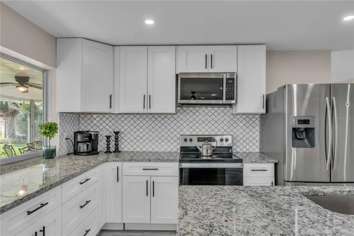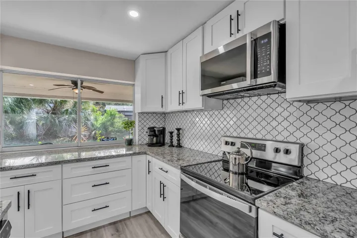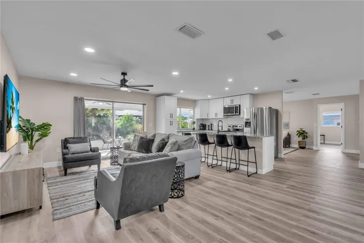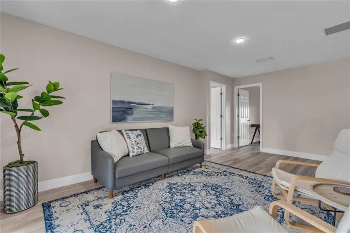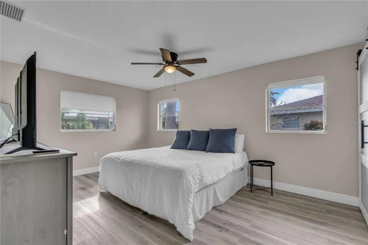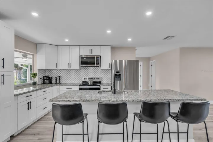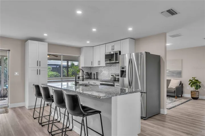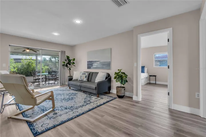 GULF GATE WOODS…This single family home offers 2 bedrooms + a den & 2 bathrooms with a split floor plan. Ideal property for your winter get away. Enjoy the Sarasota lifestyle to the fullest in this stunningly updated home nestled on an over-quarter-acre lot in the sought-after Gulf Gate Woods neighborhood. Once inside, the light and bright open-concept living areas greet you with all-new modern luxury vinyl plank flooring, recessed lighting fixtures & ceiling fans, stylish 5 1/3″ baseboards, and a contemporary fresh coat of paint. The kitchen’s upgraded granite counters & island bar top, soft-close cabinets, custom tile backsplash, and stainless appliances add a flair and its passthrough window helps achieve Florida indoor-outdoor living & dining. Using the sliding doors in the living room or formal dining room, head out to explore the lanai to imagine all the possibilities for entertaining it provides and to scope out the ample backyard. Back inside, soak in the primary bedroom’s quarters, including an updated en-suite bath complete with walk-in & linen closets, dazzling Carrara marble sink vanities, and a lavish floor-to-ceiling tile shower. Make sure to check out the bonus room located just off the primary bedroom, which makes for a perfect home office or nursery, before heading across the split-bedroom floor plan to investigate the guest bedroom and bathroom that also received a revamp of chic custom tile in the shower and Carrera marble vanity. A dedicated laundry room with a utility sink, an attached two-car garage. This prime location means it is just minutes from all the fabulous dining, shopping, nightlife & cultural events happening in the nearby Gulf Gate business district or in Downtown Sarasota, as well as the Legacy Trail, golf courses, boat clubs, an award-winning library, and of course… the world-famous soft sand and warm blue gulf waters of Siesta Key’s beaches!