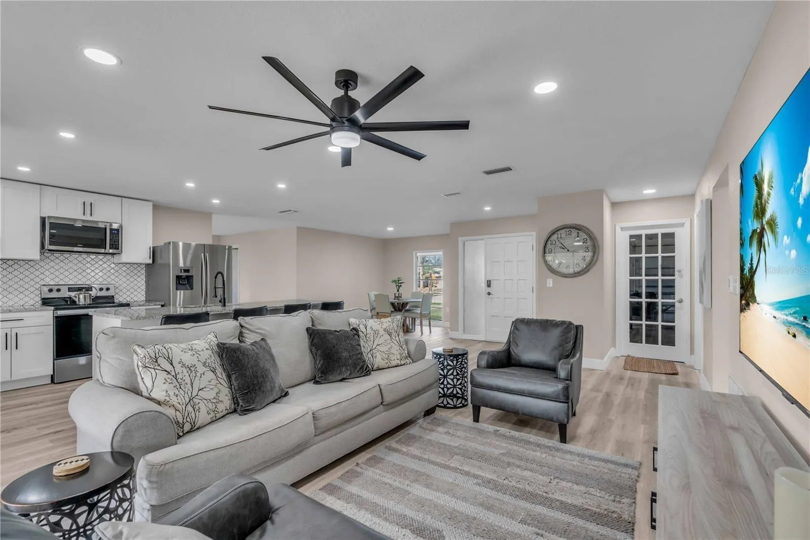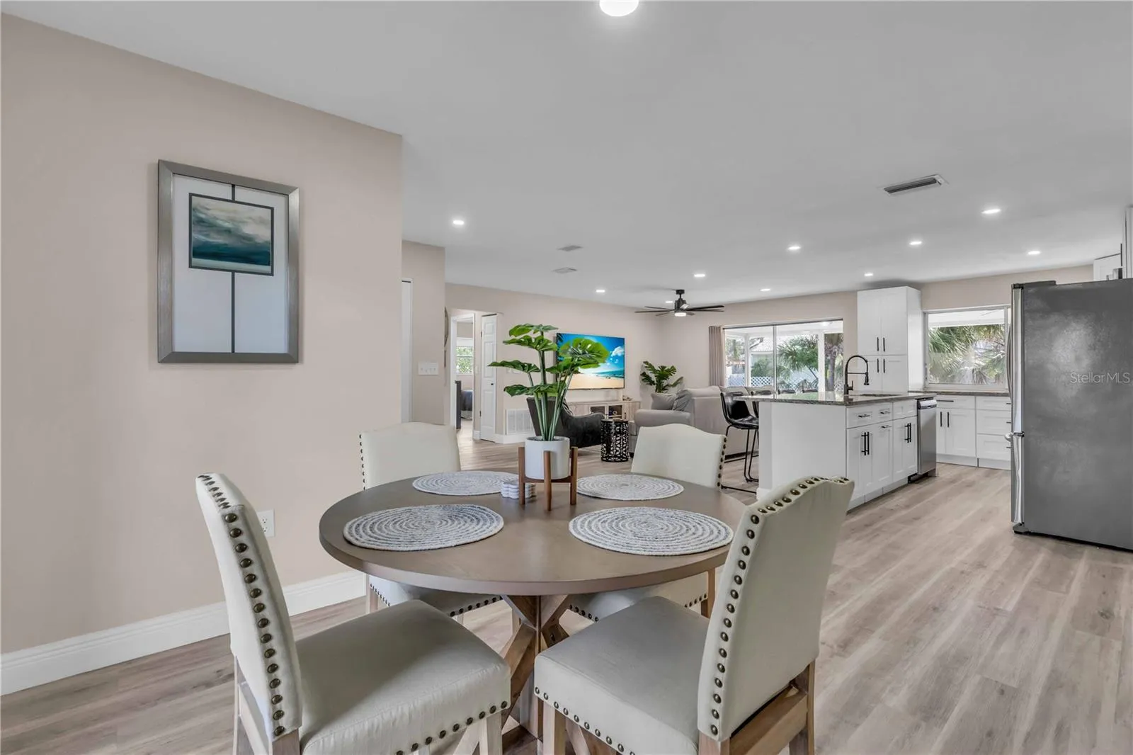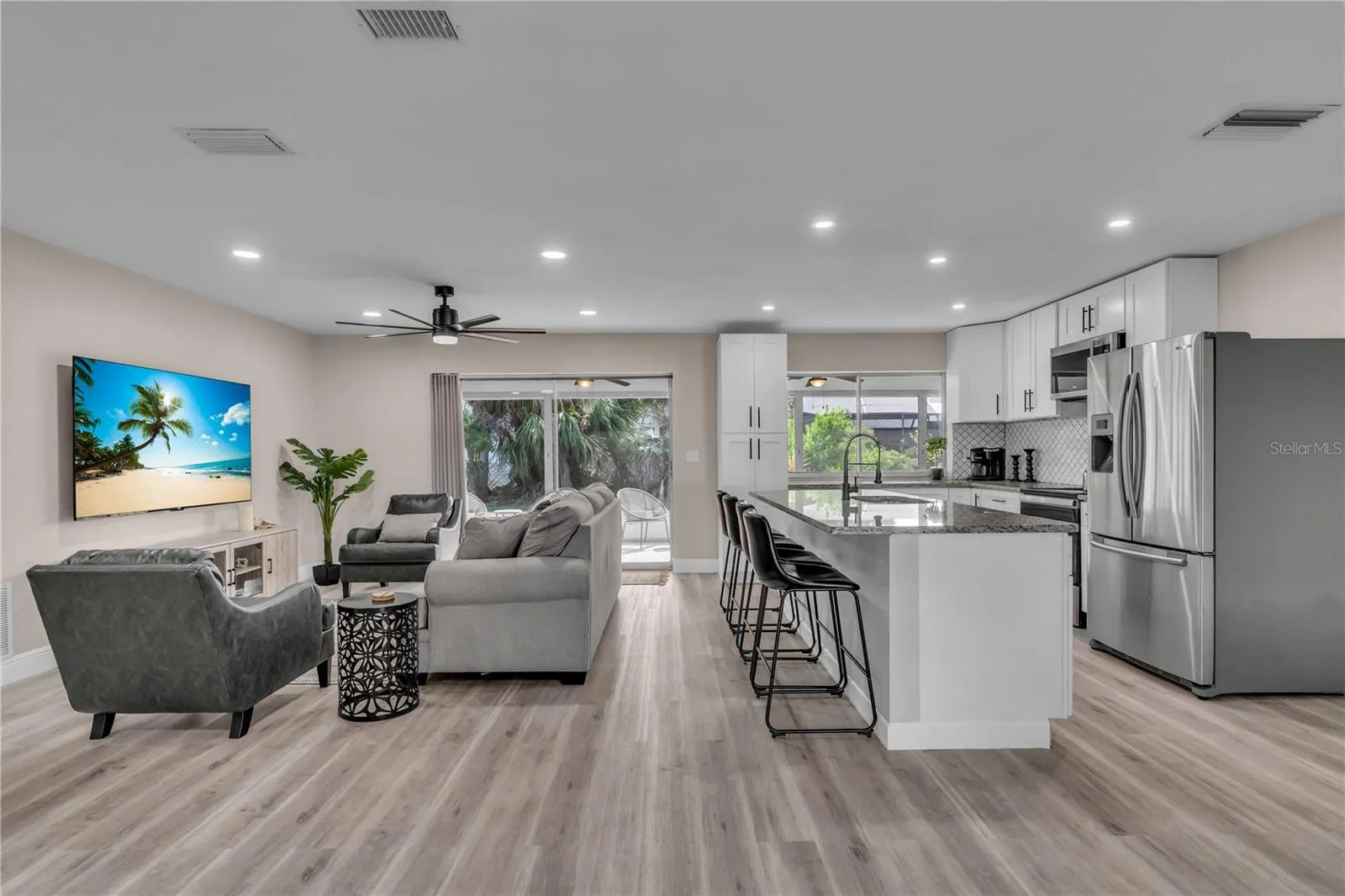 GULF GATE WOODS…This single family home offers 2 bedrooms + a den & 2 bathrooms with a split floor plan. Ideal property for your winter get away. Enjoy the Sarasota lifestyle to the fullest in this stunningly updated home nestled on an over-quarter-acre lot in the sought-after Gulf Gate Woods neighborhood. Once inside, the light and bright open-concept living areas greet you with all-new modern luxury vinyl plank flooring, recessed lighting fixtures & ceiling fans, stylish 5 1/3″ baseboards, and a contemporary fresh coat of paint. The kitchen’s upgraded granite counters & island bar top, soft-close cabinets, custom tile backsplash, and stainless appliances add a flair and its passthrough window helps achieve Florida indoor-outdoor living & dining. Using the sliding doors in the living room or formal dining room, head out to explore the lanai to imagine all the possibilities for entertaining it provides and to scope out the ample backyard. Back inside, soak in the primary bedroom’s quarters, including an updated en-suite bath complete with walk-in & linen closets, dazzling Carrara marble sink vanities, and a lavish floor-to-ceiling tile shower. Make sure to check out the bonus room located just off the primary bedroom, which makes for a perfect home office or nursery, before heading across the split-bedroom floor plan to investigate the guest bedroom and bathroom that also received a revamp of chic custom tile in the shower and Carrera marble vanity. A dedicated laundry room with a utility sink, an attached two-car garage. This prime location means it is just minutes from all the fabulous dining, shopping, nightlife & cultural events happening in the nearby Gulf Gate business district or in Downtown Sarasota, as well as the Legacy Trail, golf courses, boat clubs, an award-winning library, and of course… the world-famous soft sand and warm blue gulf waters of Siesta Key’s beaches!