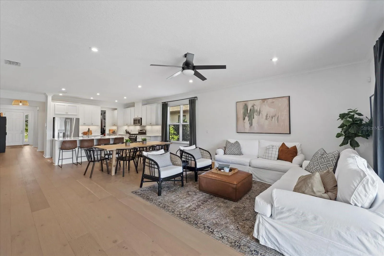 WELCOME TO SKYE RANCH: Sarasota’s PREMIER master-planned community! *** ASSUMABLE 3.5% VA LOAN *** This stunning Antigua model by Taylor Morrison offers 4 beds, 3 baths PLUS den/office, and 2,399 spacious SQFT of thoughtfully designed living space. From the moment you arrive, you’ll notice the pride of ownership inside as engineered hardwood floors flow seamlessly through the open-concept living areas. The heart of the home is a bright, modern kitchen with quartz countertops, white cabinetry, a subway-tile backsplash, and stainless steel appliances—enhanced with a reverse osmosis system for pristine drinking water. This space opens effortlessly to a large dining and living area with expansive pocketing sliders leading to the screened lanai and your fully fenced backyard, creating the perfect indoor/outdoor flow. The split-bedroom design offers privacy and flexibility. The primary suite is a true retreat, with a walk-in custom closet, dual sinks with quartz countertops, a soaking tub, and a frameless glass walk-in shower. Two guest baths—one with a frameless shower and the other with a tub/shower combo—ensure comfort for family and guests. Additional highlights include Govee exterior lighting, an interior laundry room that connects directly to the primary closet for day-to-day convenience, a den/office accessible off the kitchen’s butler pantry and a 2-car garage with a sealed, textured floor and built-in storage system. A whole-home water softener adds yet another layer of comfort and care to this thoughtfully upgraded residence. LOWER CDD FEE THAN NEW CONSTRUCTION! Set within Cassia at Skye Ranch, this home is very convenient to main amenity center, THE HUB! Designed with care to preserve Sarasota’s natural beauty, Skye Ranch showcases grand oaks, lush palms, pristine lakes, and forested wetlands connected by miles of scenic trails. Just beyond this tranquil setting, you’ll find all the conveniences Sarasota is known for—A-rated schools (including the brand-new K-8 Skye Ranch School), Gulf Coast beaches, medical facilities, shopping, dining, and cultural attractions with easy access to I-75. Residents enjoy world-class amenities at THE HUB: resort-style and junior Olympic pools, a splash pad, state-of-the-art fitness center, indoor basketball gymnasium, tennis, pickleball, volleyball, a rock climbing wall, café, event spaces, pet park, the recently announced lazy river (coming soon), and so much more. Whether relaxing at home or exploring the community, Cassia at Skye Ranch offers a lifestyle unmatched in Sarasota. Call today for a private tour!