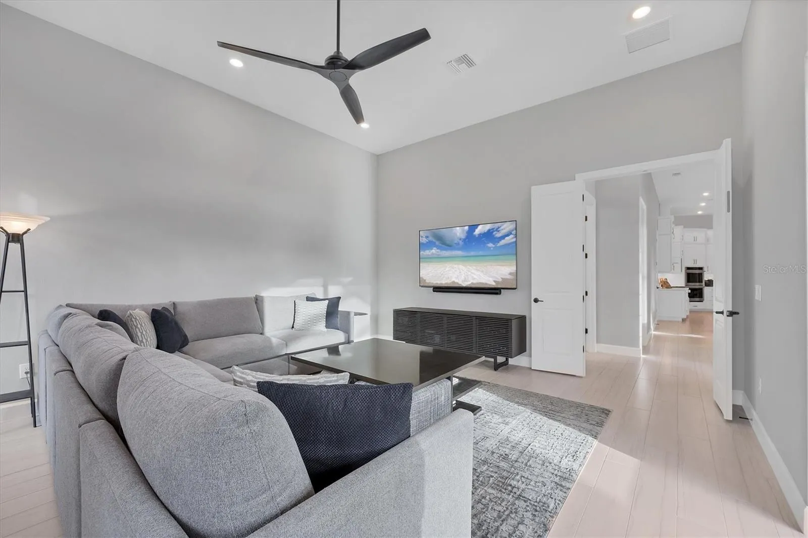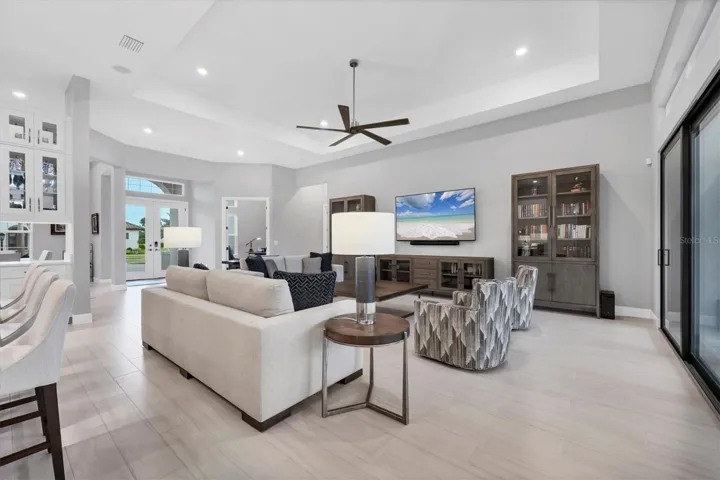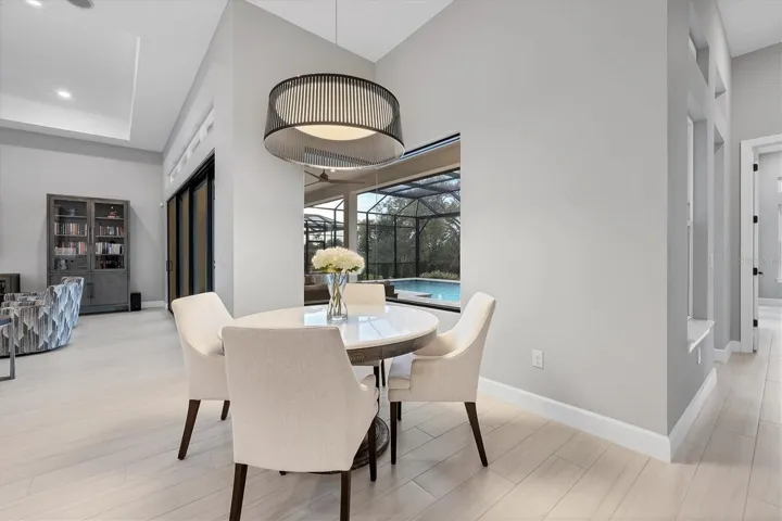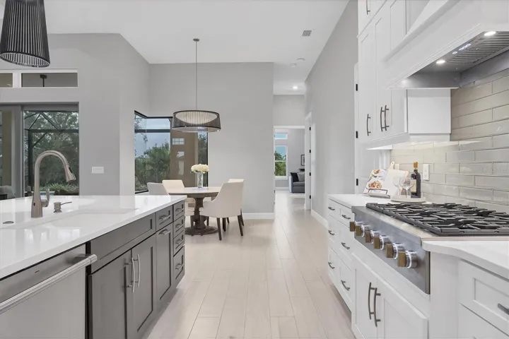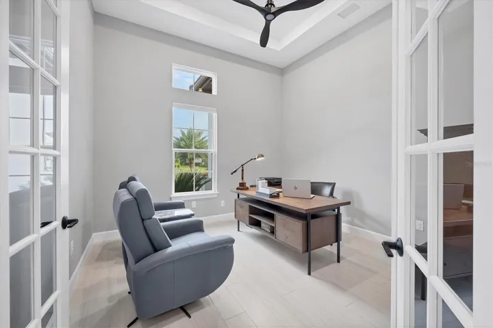 This sought-after Beacon floor plan—no longer offered by the builder and the largest single-story home available in Azario Esplanade—presents an extraordinary opportunity to own one of the community’s premier residences that is golf deeded, which includes golf membership. Set on an oversized 90-foot homesite, among the largest in the neighborhood, this three-bedroom, 3.5-bath estate was built by Taylor Morrison and features a private office, spacious bonus room, and a large resort-style pool for effortless indoor-outdoor living. Beyond the elegant double glass entry doors, an airy, light-filled floor plan unfolds with 12-foot soaring tray ceilings, architectural detailing, designer lighting and wide-plank porcelain tile floors throughout. A separate formal dining room sets the stage for holidays and entertaining, while the chef’s kitchen impresses with custom cabinetry, a luxury Monogram appliance package, quartz countertops with an oversized island, a walk-in pantry, and a casual breakfast nook overlooking the lanai. The expansive primary suite serves as a retreat, offering spacious walk-in closets and a spa-inspired bath with dual vanities and an oversized walk-in shower. The two private guest suites each feature en-suite baths. Thoughtful functionality for daily living is provided by a large bonus room, a dedicated office with French doors, an additional half bath, a well-designed laundry room with built-in cabinetry and counter space, and an organizational drop zone. Designed for seamless indoor-outdoor enjoyment, the home’s sprawling lanai features a fully equipped outdoor kitchen, panoramic screen enclosure, and a sparkling pool overlooking the tranquil backyard—fence-ready if desired. Kevlar automatic screens add privacy and storm protection at the touch of a button. Additional highlights include dual air-conditioning systems for year-round comfort, an oversized three-car side-entry garage with generous storage and a whole-house generator for peace of mind. Residents of Azario Esplanade enjoy a world-class resort lifestyle with a championship golf course, full-service clubhouse, resort-style pool, state-of-the-art fitness center, tennis and pickleball courts, spa services, the Bahama Bar with poolside dining, a gourmet culinary center and The Venue event space—all just minutes from the vibrant dining, shopping and Gulf Coast beaches that make Lakewood Ranch one of Florida’s desirable places to live.